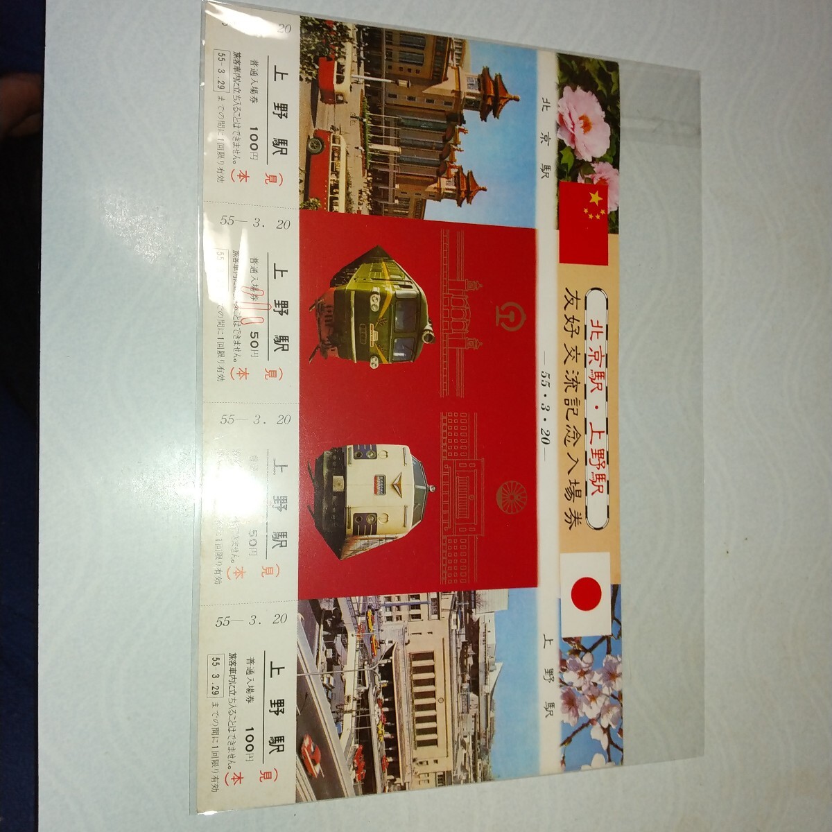 JN-36 北京駅・上野駅/友好交流記念入場券/昭和55年3月20日