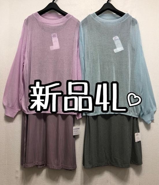 新品☆4L♪すけ感サマーニット2枚&インナーワンピ2枚♪☆a833