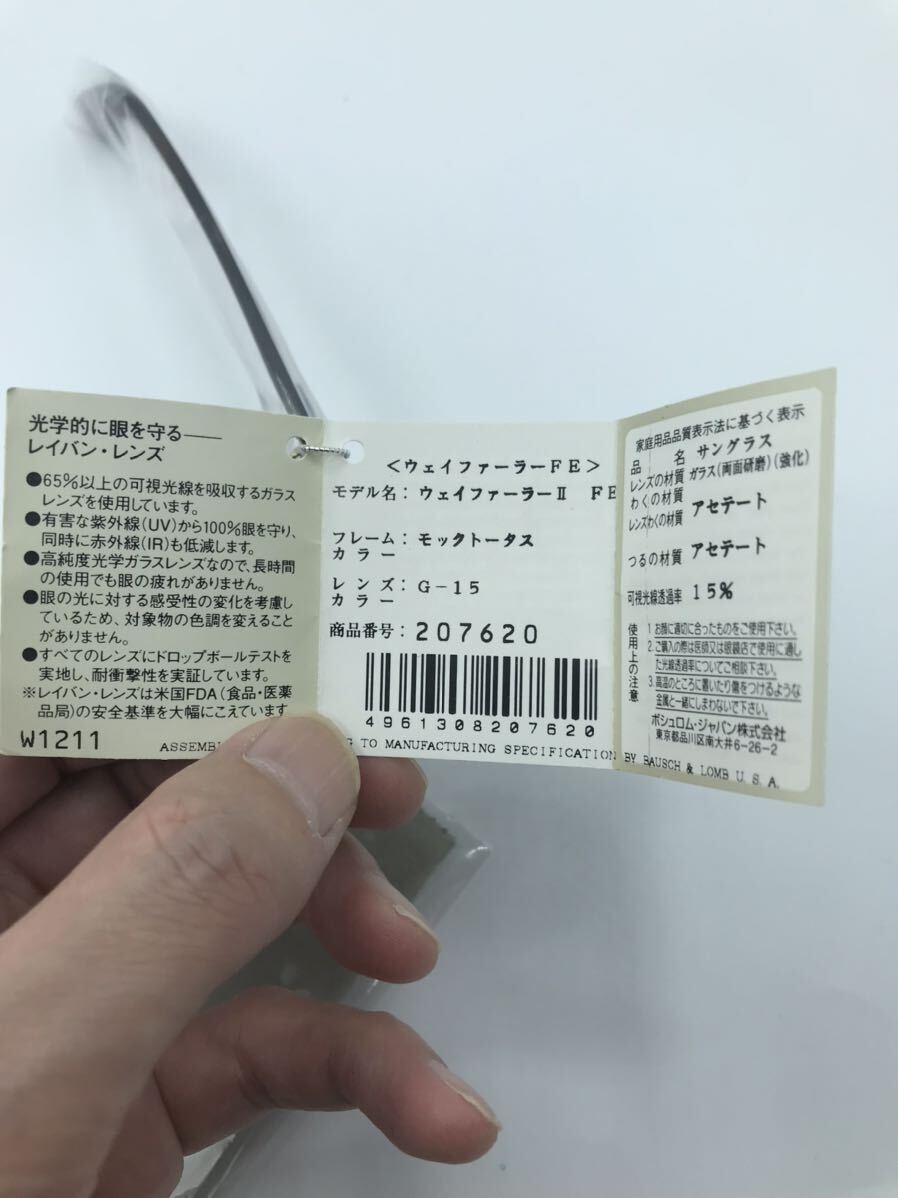 右テンプルに「B&L RAY-BAN U.S.A.* 」、左テンプルに「WAYFARER Ⅱ*」の刻印があります。