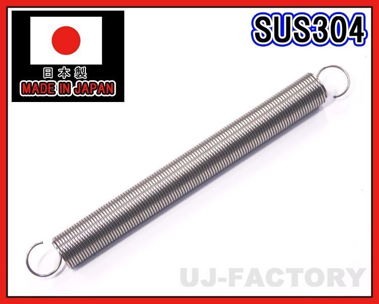 | 【 商品説明 】 ★1965年からスプリング製造に携わった「石橋製作所」、バネ製造・直販だからできるこの価格と品質!SUS304・ステンレスで、錆びにくい国内生産の引きバネです。 【バネのミニ知識】 ※通常、使用されるステンレス材(SUS304)は磁石に付きません。しかし国内メーカーのステンレス製バネ材(SUS304)は磁石に付きますが、ステンレス製に間違いございません。バネ材として磁石に付かないステンレスは「SUS316」になります。双方とも強度に変わりはございません。バネ材を使用しないスプリングは引っ張った場合元に戻りませんので、粗悪品に十分ご注意下さい。