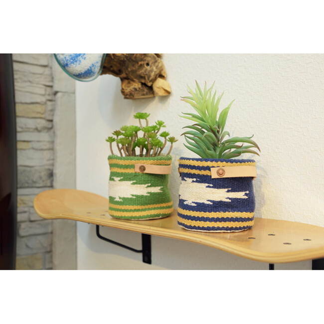 ファブリックプランター 【ネイビー】 コットン 本革