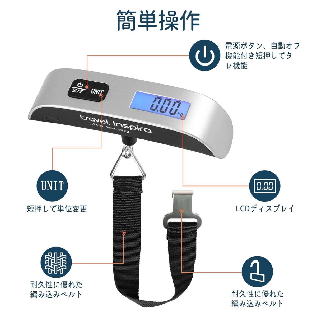 最大50kgまで計測可能で、旅行や釣り、登山など様々なシーンで活躍します。