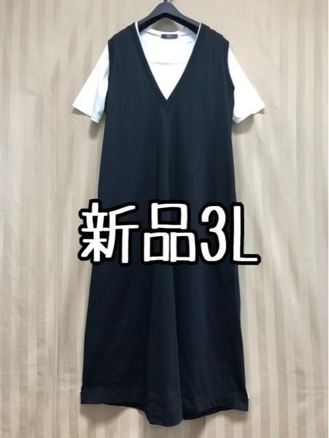新品☆3L♪白系シンプルTシャツ&黒系Vネックマキシ丈ワンピース☆x380
