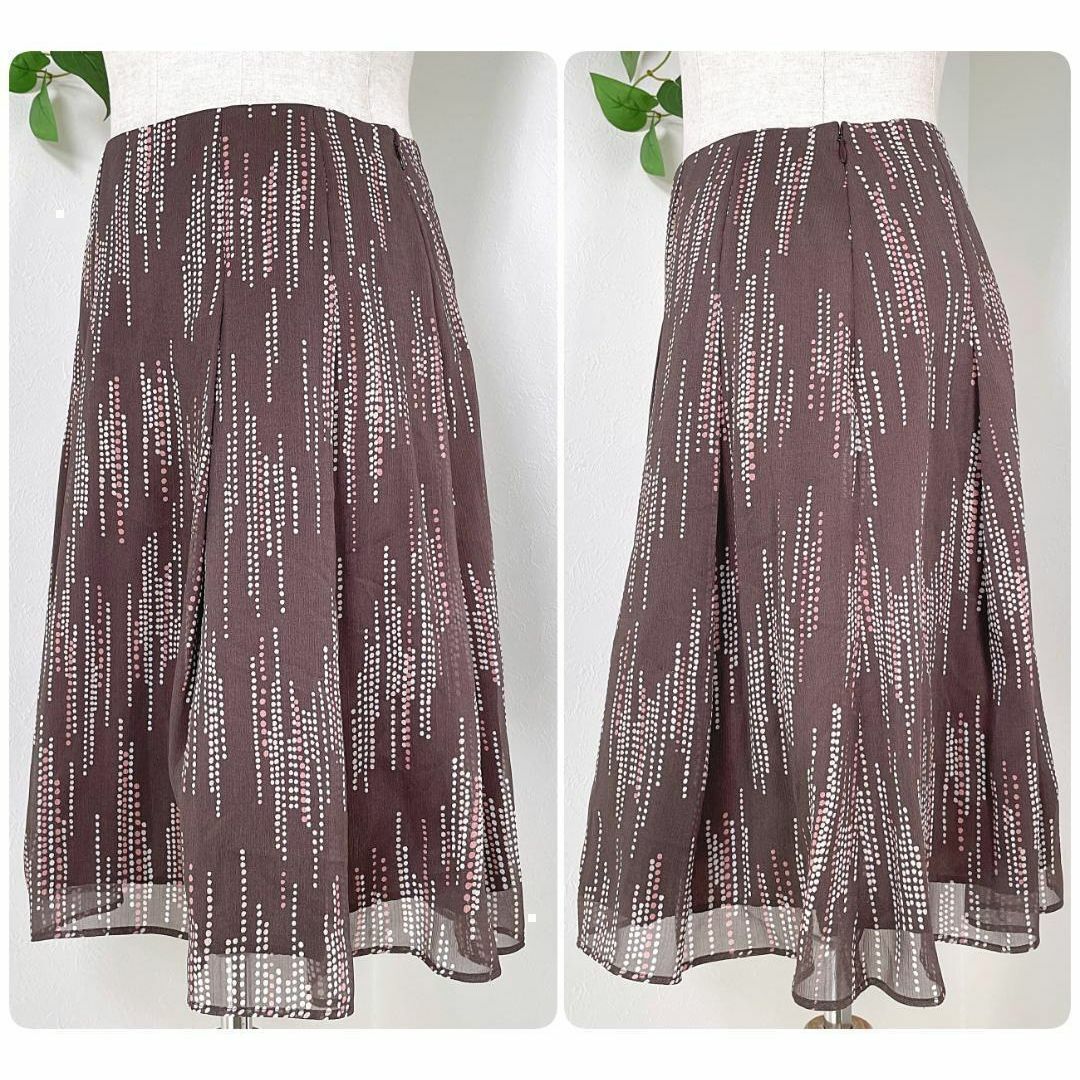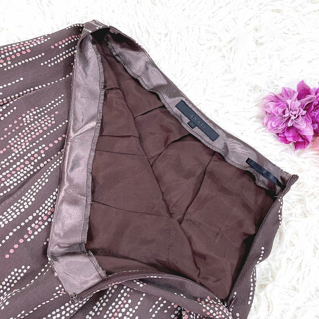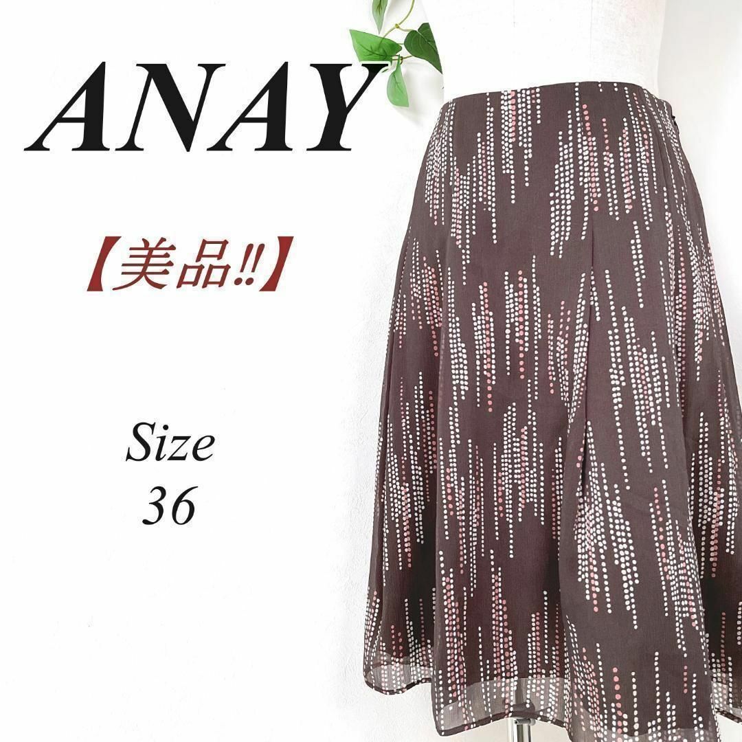 【美品】ANAY アナイ 総柄 フレアスカート ブラウン 36 S シアー タック ひざ丈スカート