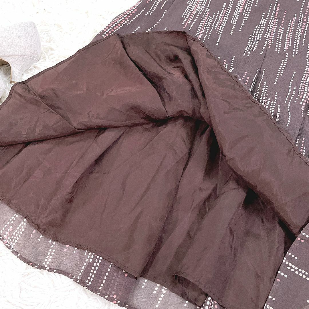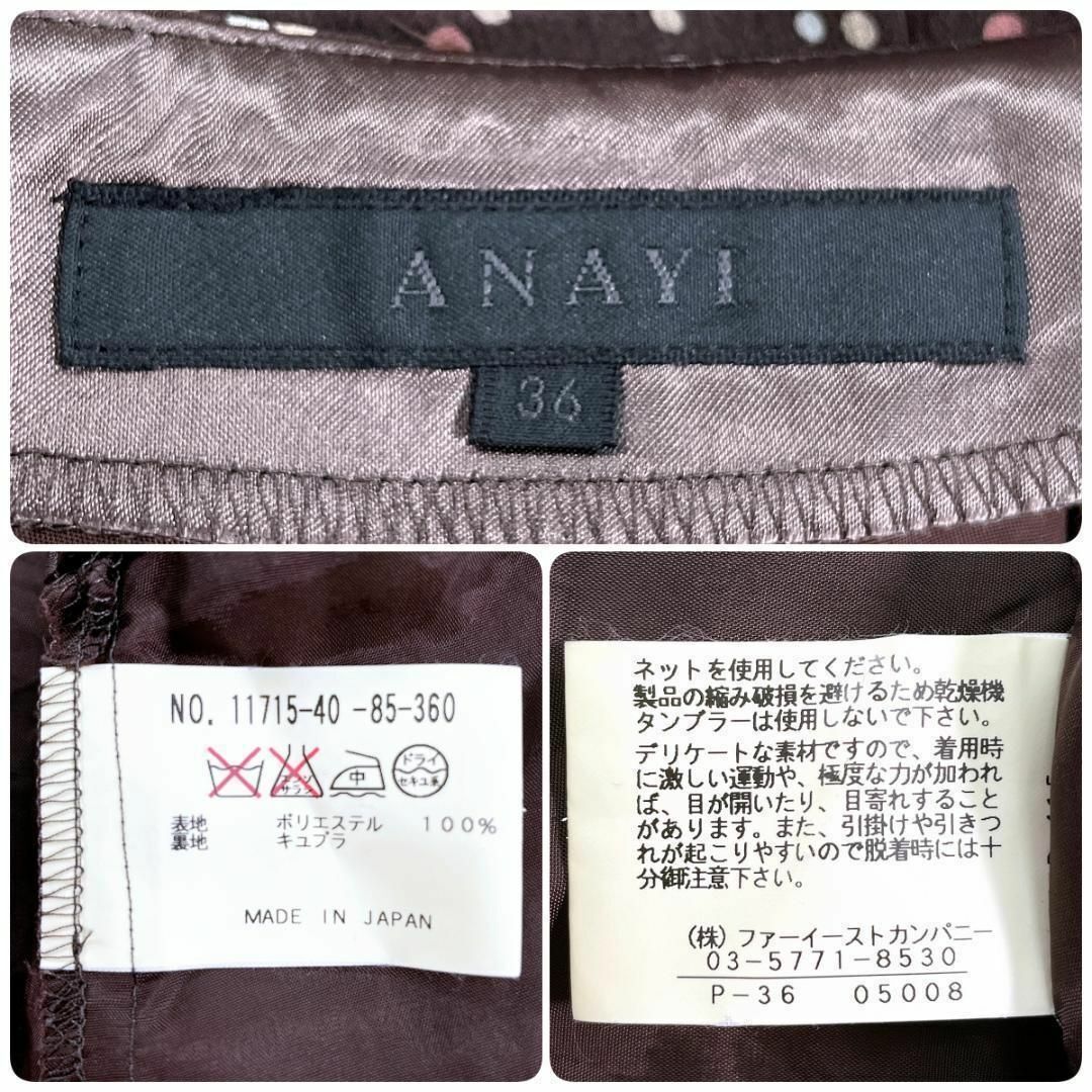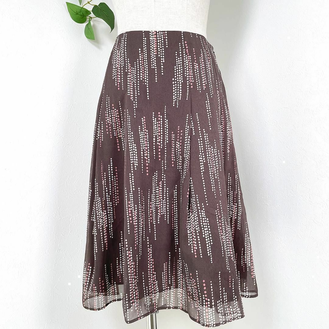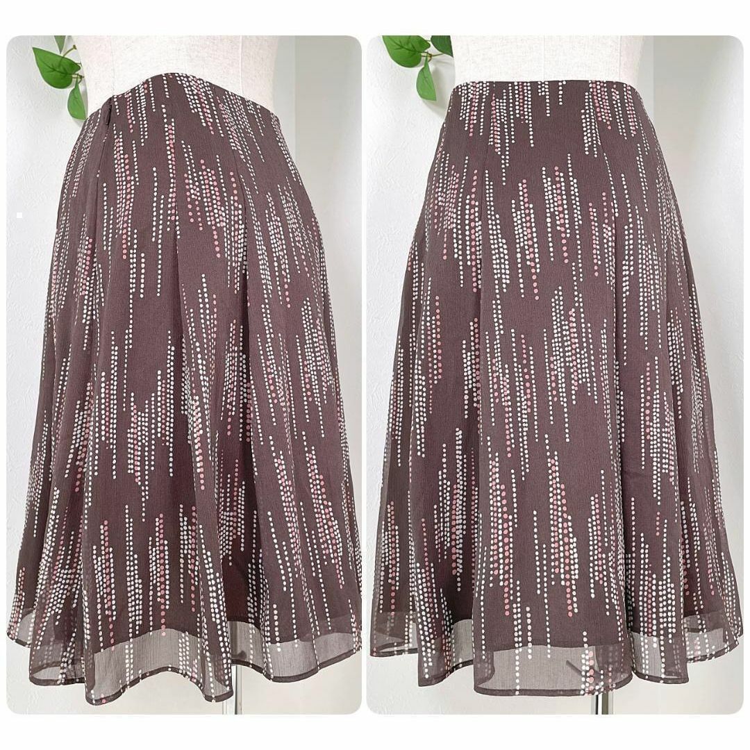 【美品】ANAY アナイ 総柄 フレアスカート ブラウン 36 S シアー タック ひざ丈スカート