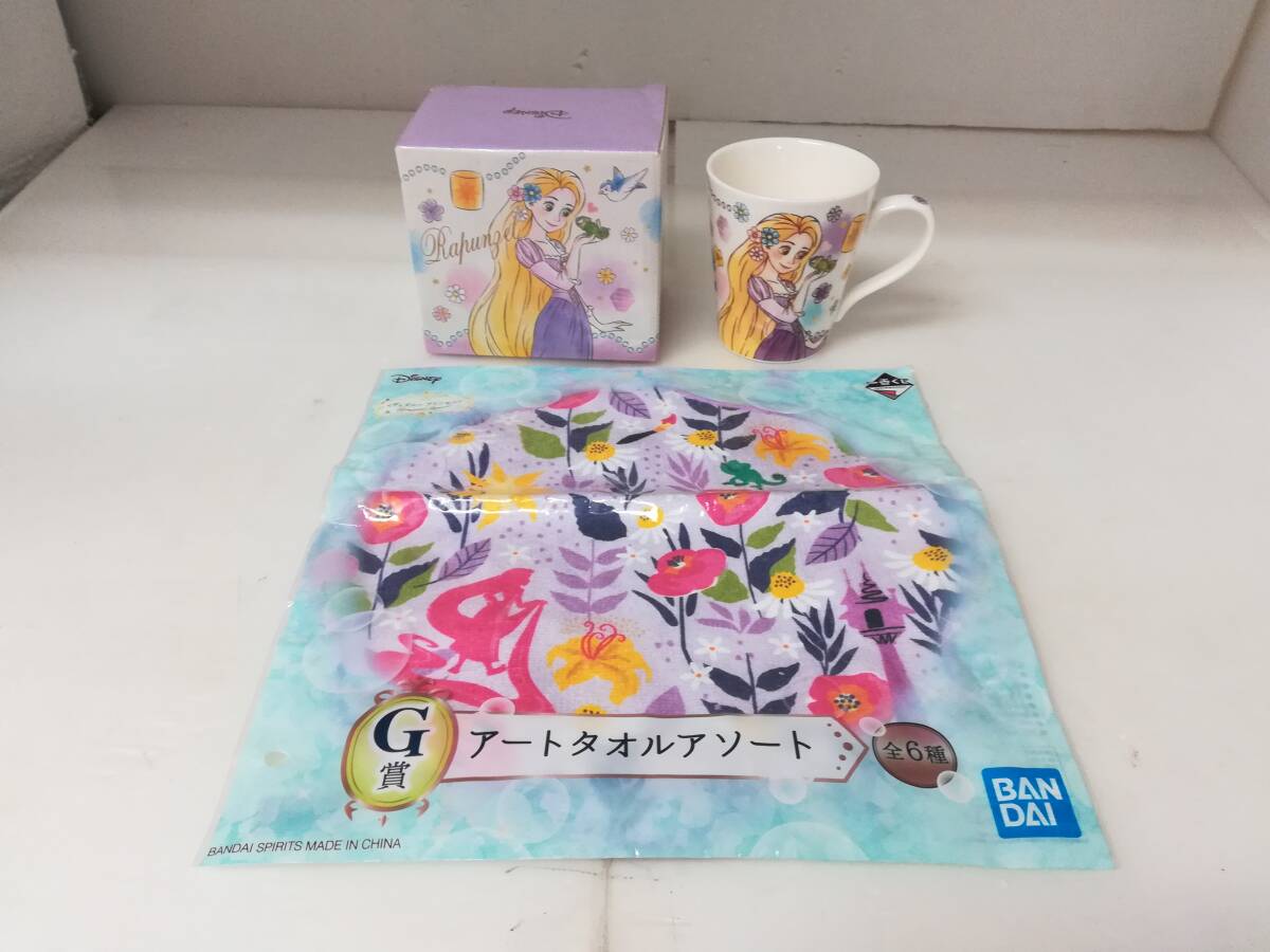 ■未使用 ディズニー T'S FACTORY ラプンツェル スリムマグ フレンズ 陶器 マグカップ・一番くじ アートタオル 計2点セット ミニタオル
