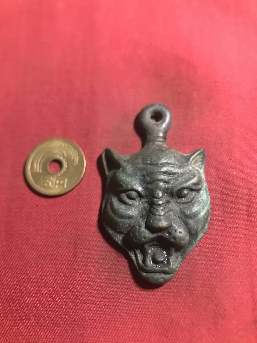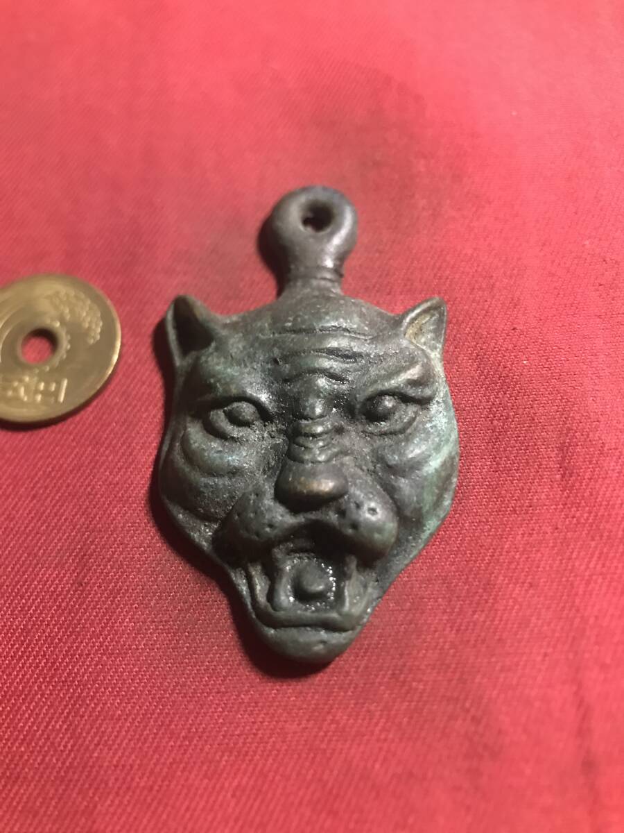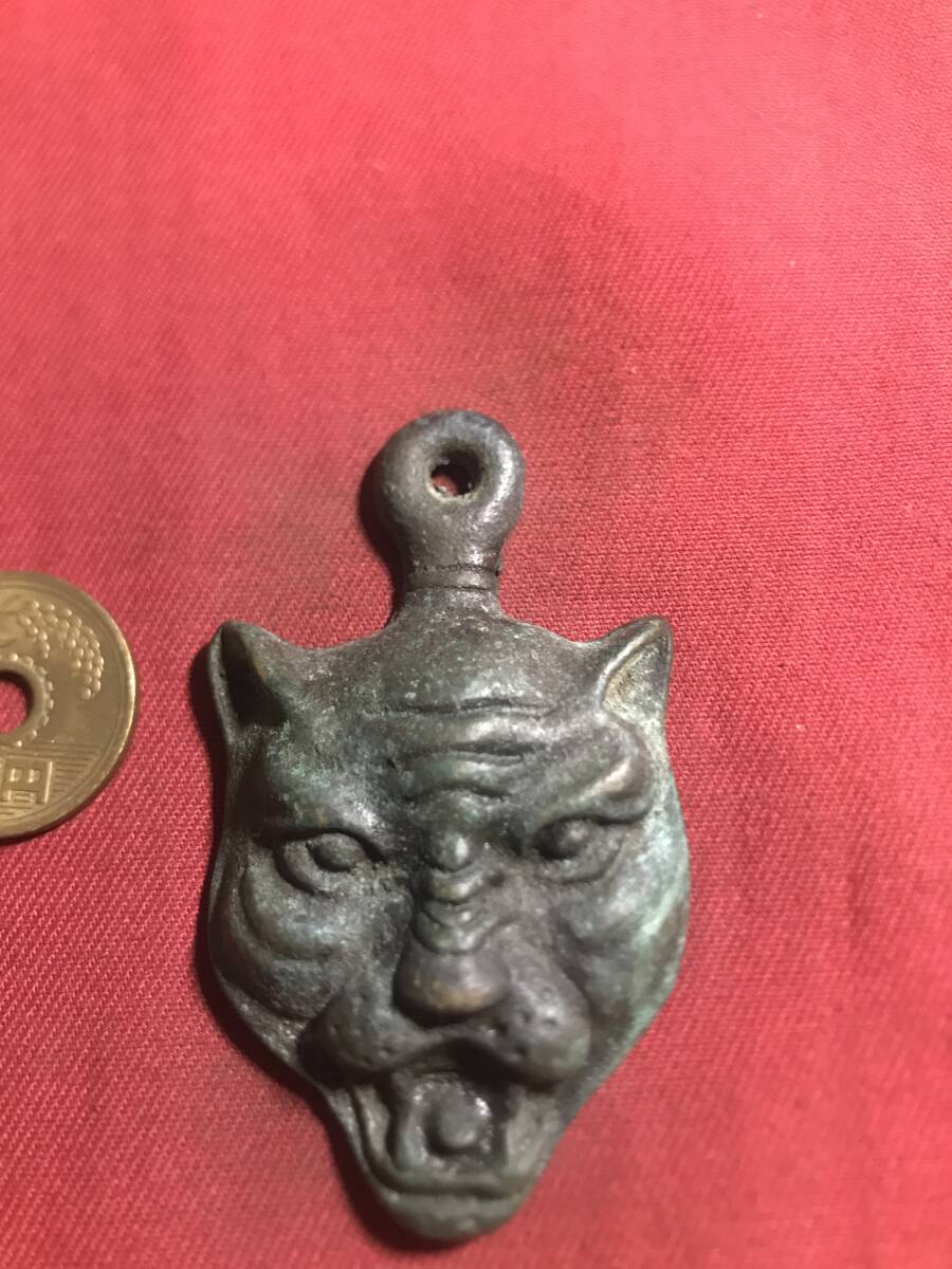 銅器  置物  法器 ?    時代物   トラの頭?  ストライプ  怪獣