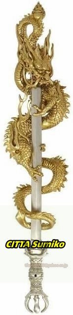 不動明王が持つ魔を打ち払う剣「倶利伽羅剣(倶利伽羅龍王)」。 剣に巻き付いた倶利伽羅竜王は迷いを除き人々を守護するといわれています。