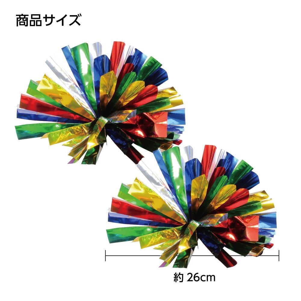 組み立て不要の「完成済みチアポンポン」です。組立済なので、運動会準備の手間を軽減します。ソフトゴム付で手のひらが使えるハンドフリータイプ です。特許登録済。