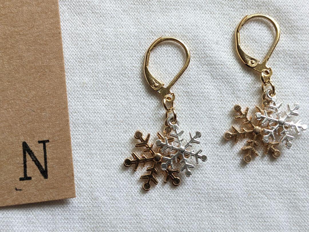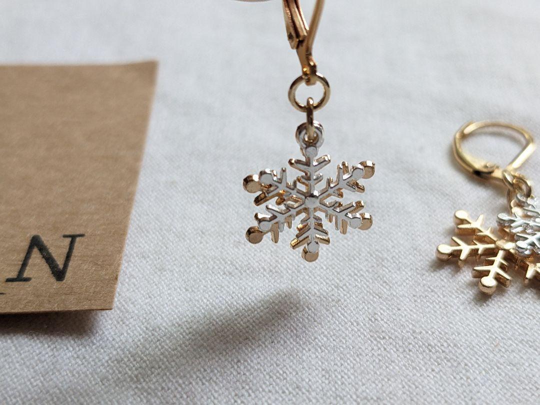 ゴールドカラーとシルバーカラーのスノーチャームを使いましたです。こちらはシルバーカラーが大きくゴールドカラーが小さいタイプです。 ロングワンピースやワイドパンツ、デニム、ブラウスなどに。