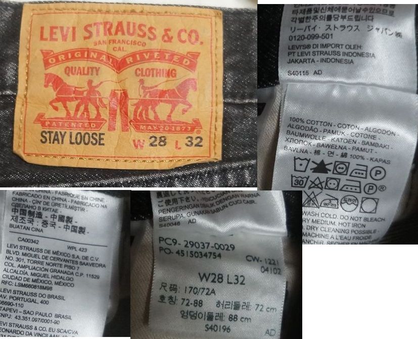 良品 Levi's STAY LOOSE W28 黒 リーバイス ステイルーズ