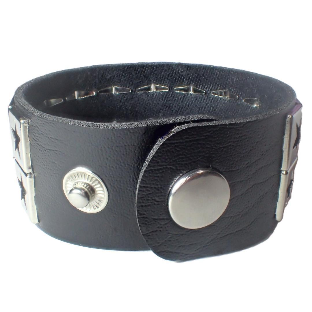 スタッズ 鋲 星 スター 2列 レザーブレスレット ブレスレット アクセサリー バングル リストバンド ロック パンク 黒色 ①