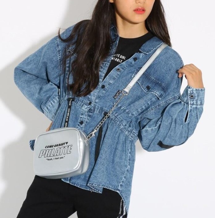 新品  PINK-latte ニコラ掲載スクエアショルダーバッグ シルバー 定価3850円