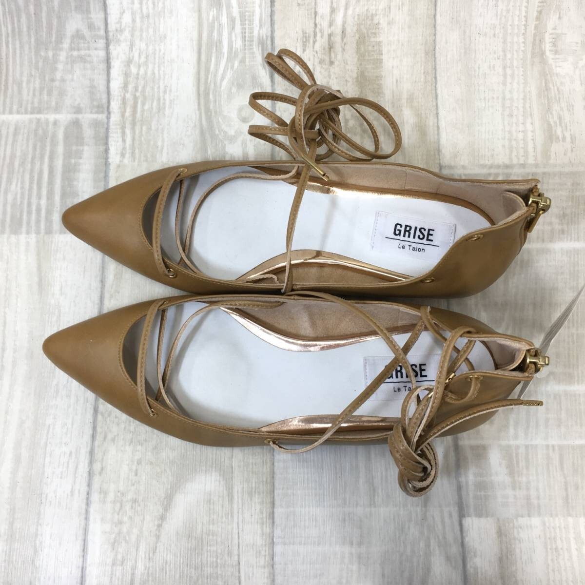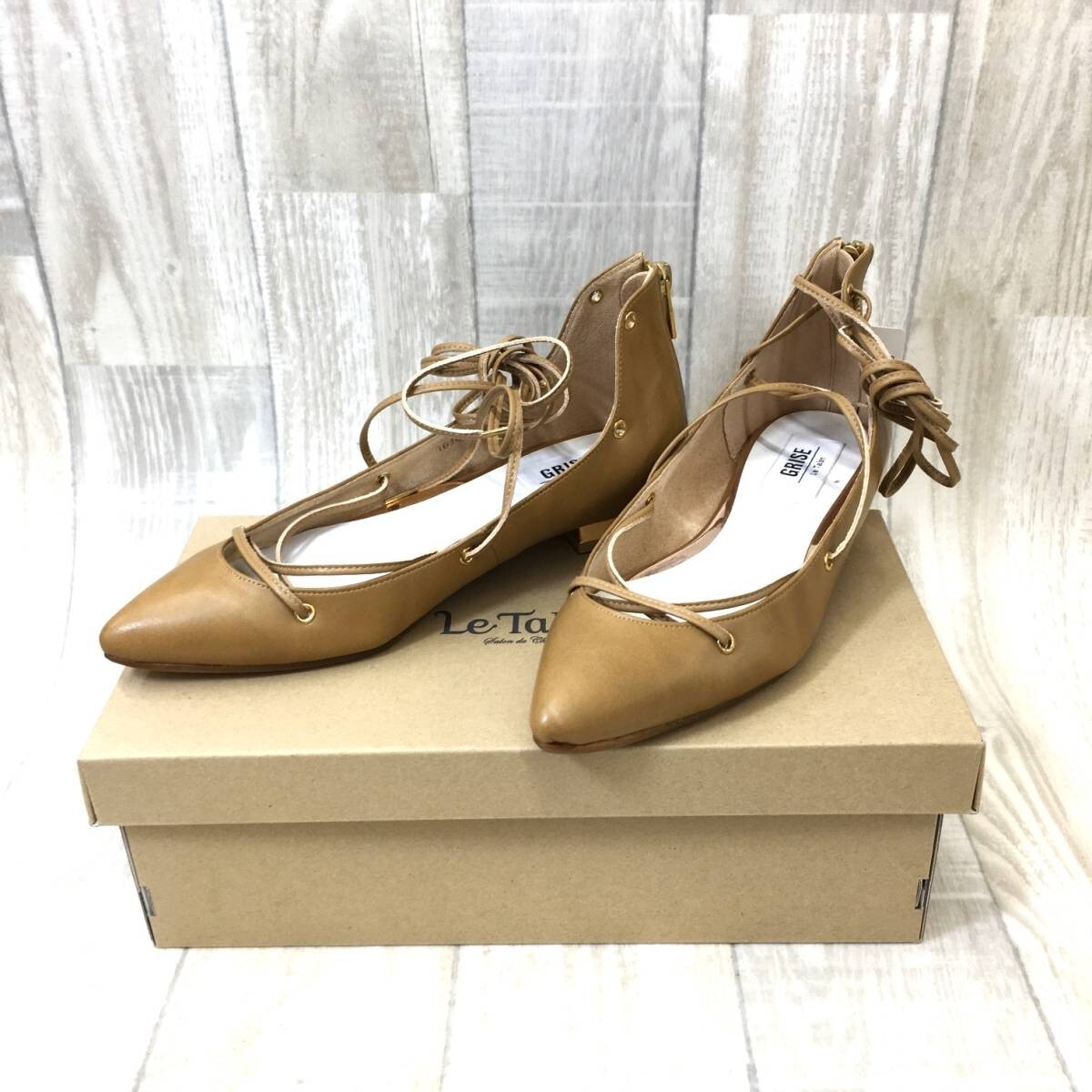 NZH011●箱付き GRISE Le Talon ポインテッド レースアップ パンプス●36●ベージュ系 ル タロン