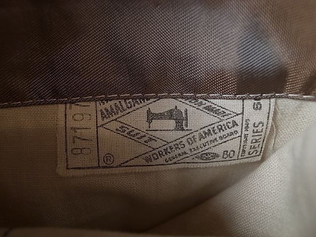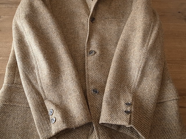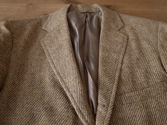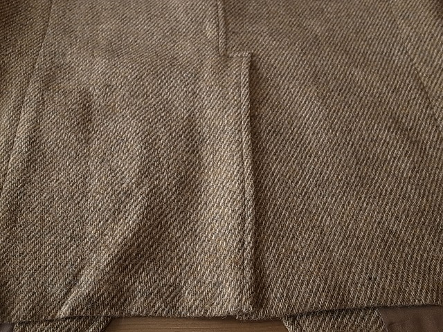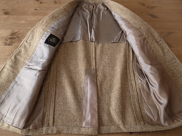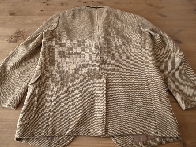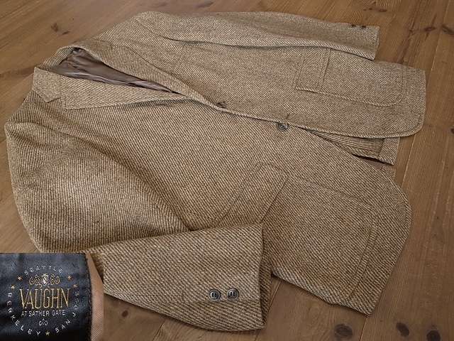 ◆ブランド 「VAUGHN」 1960年代 ビンテージ アメリカ古着 ●サイズ表記 なし 実寸サイズ M相当 肩幅…42cm(肩先から肩先の間の長さ) 身幅…54cm(両脇を横直線に結んだ長さ) 着丈…71cm(後衿ぐり中央から後身頃裾) 袖丈…59cm(袖付けの肩先から袖先) ※平置き状態での素人採寸ですので、多少の誤差はご了承ください。 ●素材…ウール ツイード素材 ●色…ベージュ×茶 ダイアゴナルツイード ●ベント…センターベント(フックベント) ●ポケット…フラップパッチポケット ●裏地…背抜き仕立て ●製造国表記…USA(ユニオンチケット付き) ●状態…使用感は少ない美品です。 ★送料 全国一律 700円 佐川急便 (北海道900円 沖縄その他離島1700円) ※複数ご購入の場合、同梱発送可能です。 |