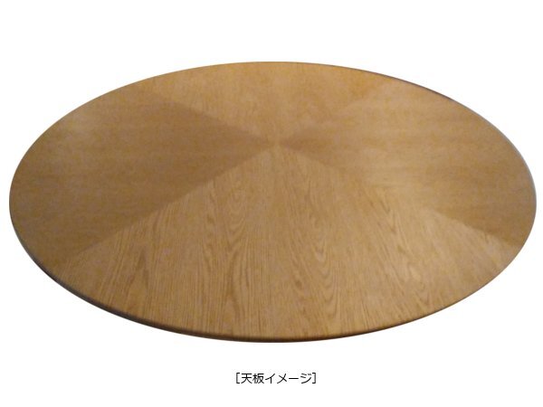 オーク突板を矢貼りにデザインした円形のダイニングテーブル。脚にはあえて重さをだした円錐形のデザイン性の高いものにし、安定感があります。シンプルなデザインなので、お気に入りのチェアをセットしてご使用下さい。