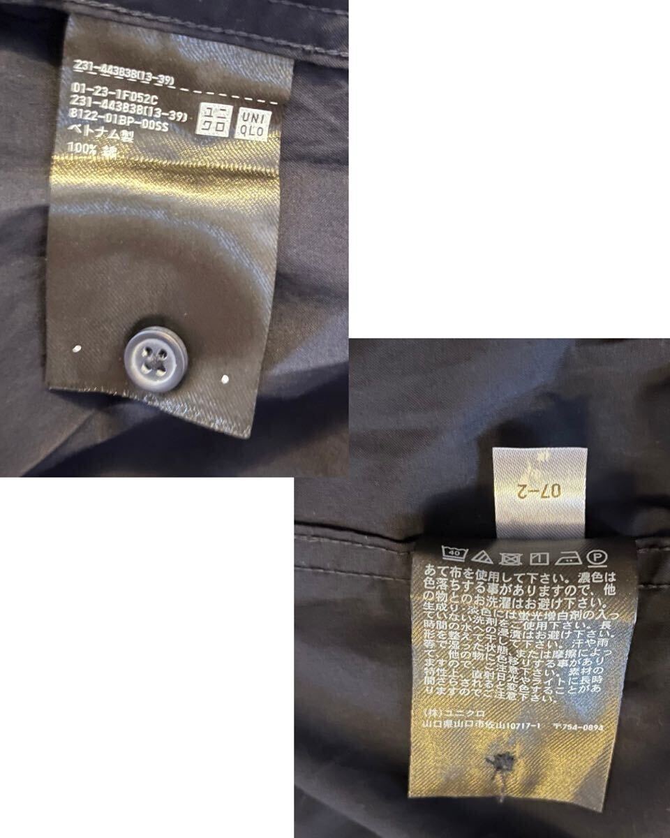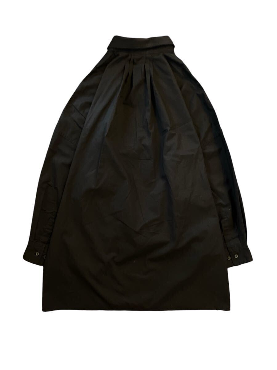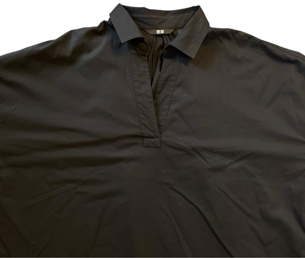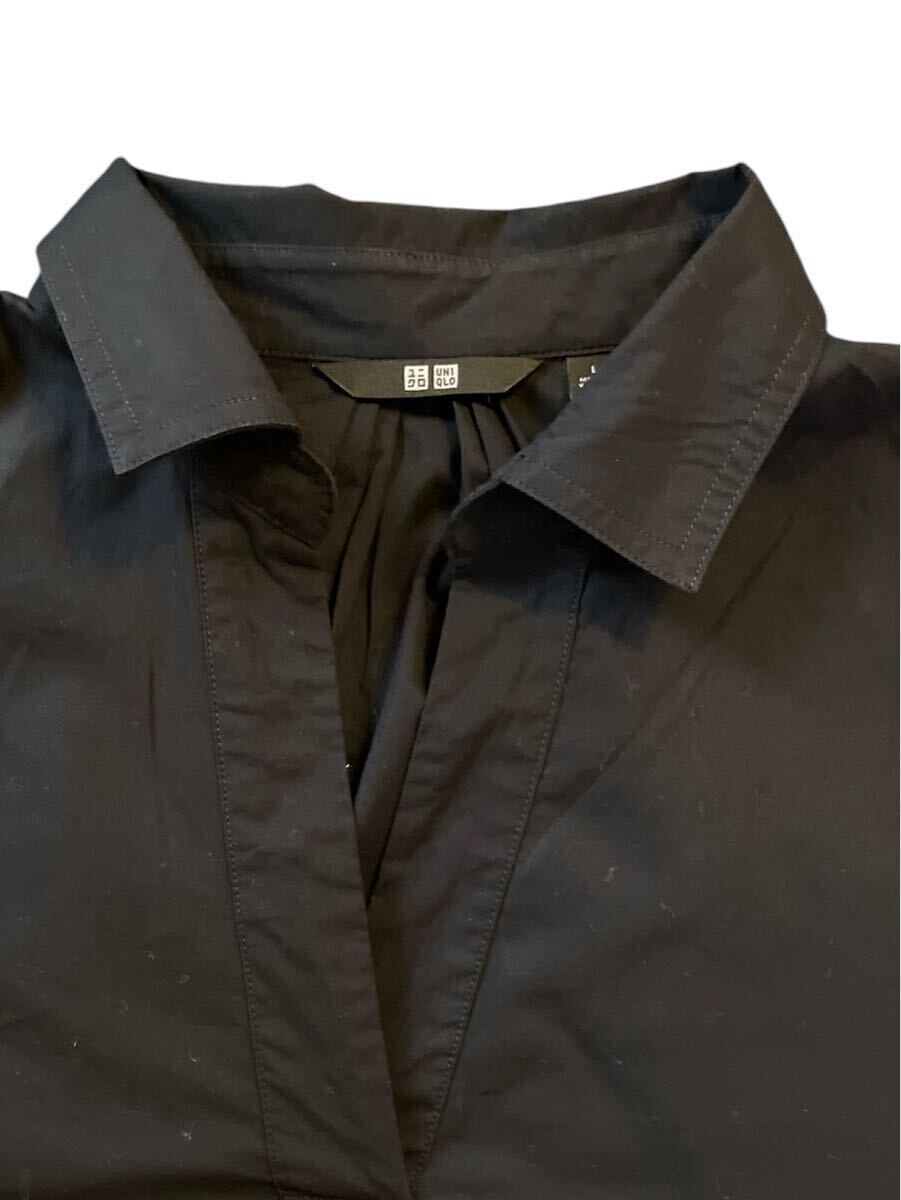 UNIQLO ボリューム7分丈袖スキッパーシャツ●レディースL●ブラック バックギャザーふんわり ドロップショルダー●洗濯プレス済み古着/14