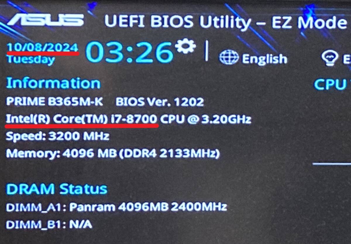 アップした画像はBIOS起動時の型番表示ですので詳しくは3枚目のアップ画像をご確認下さい。
