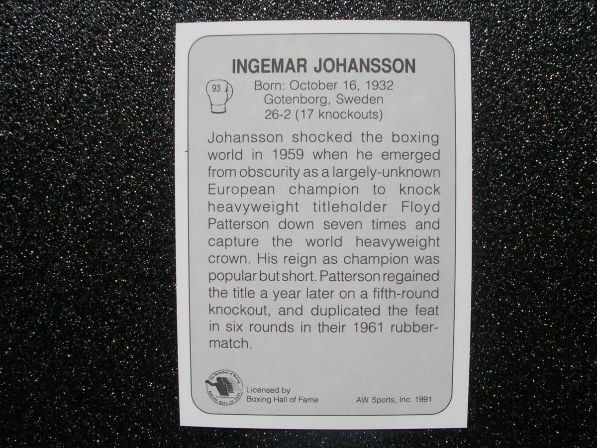 1991 All World Boxing # 93 Ingemar Johansson