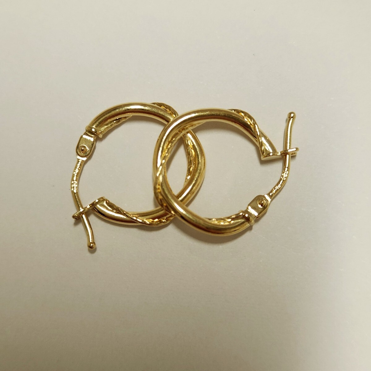 サイズ違いのフープ2本を絡ませたお洒落なデザインのピアスです。