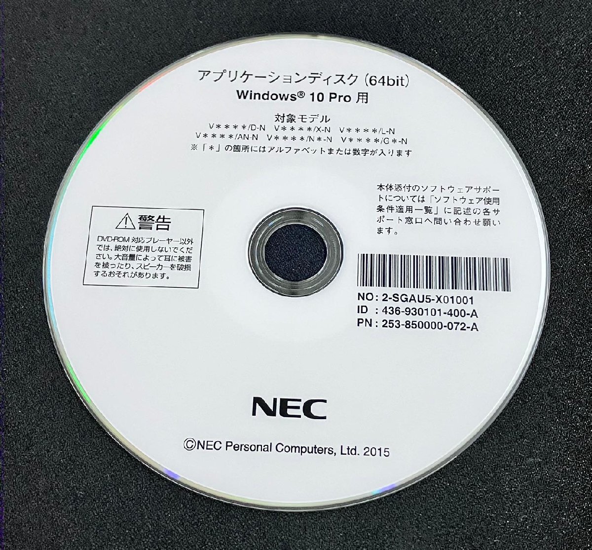 商品名 | NEC アプリケーションディスク Windows 10 Pro 64bit 対象モデルV****/D-N V****/X-N V****/L-N V****/AN-N V****/N*-N |