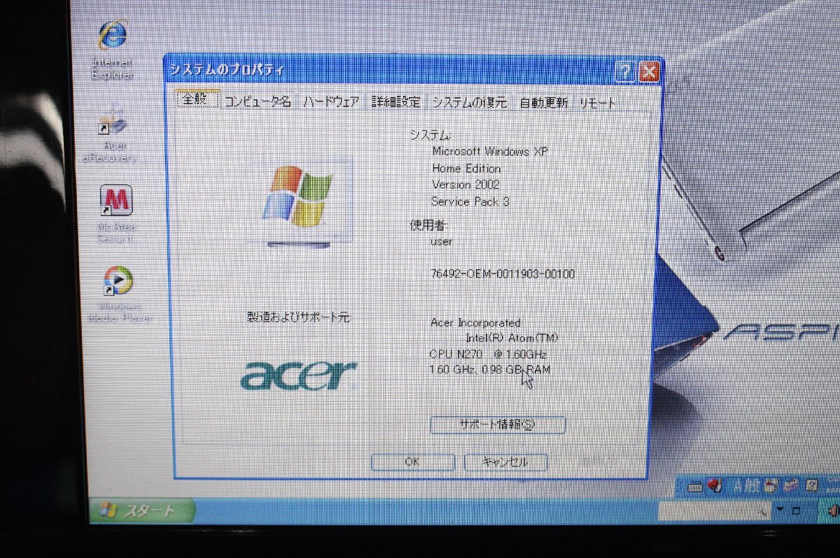 【PK71】レア! XP搭載 acer 型番ZG5 部品取り・修理ベース用 ジャンク