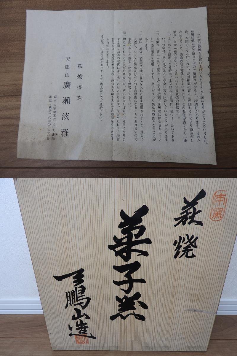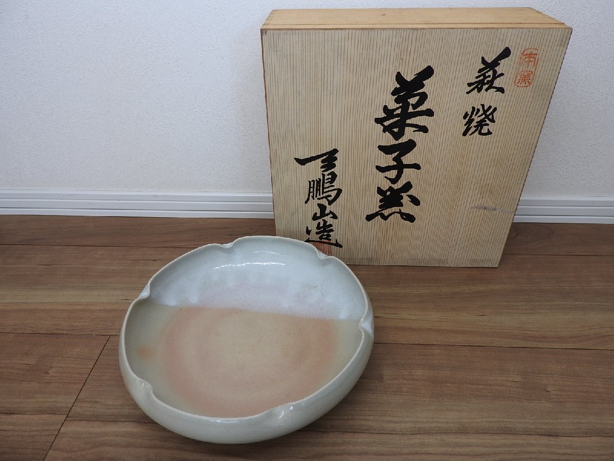 天鵬山造 萩焼 菓子鉢 菓子器になります。 比較的綺麗な状態かと思います。 【サイズ】 口径 23㎝ 高さ 6㎝ 写っているものが全てです。 状態も含めて写真にてご確認下さい。 | ||||
