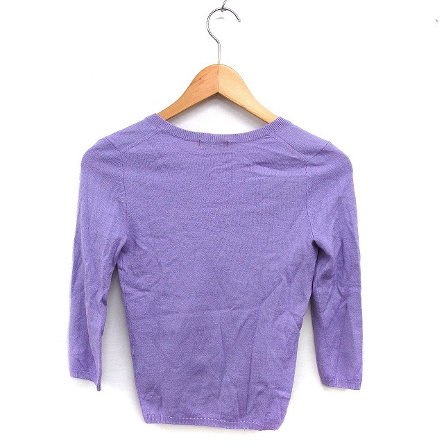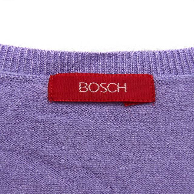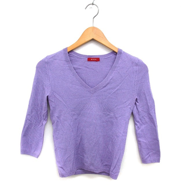 ボッシュ BOSCH ニット セーター ウール混 リブ Vネック クロップド ハイゲージ 七分袖 38 紫 パープル /NT35 レディース