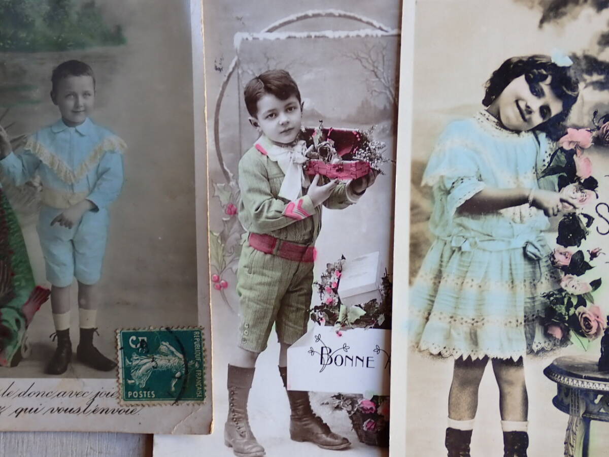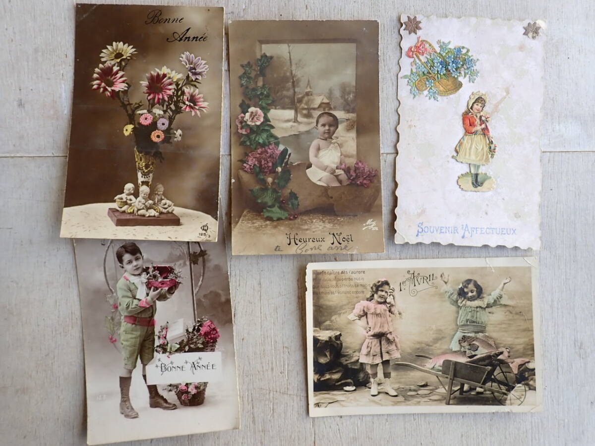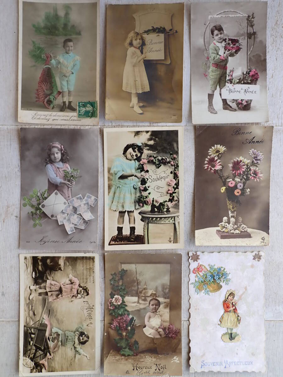 フランスアンティーク ポストカード 9枚 お祝い 花 紙もの ヴィンテージ フレンチ 素敵 古い 手書き ハガキ 葉書き paris 子供
