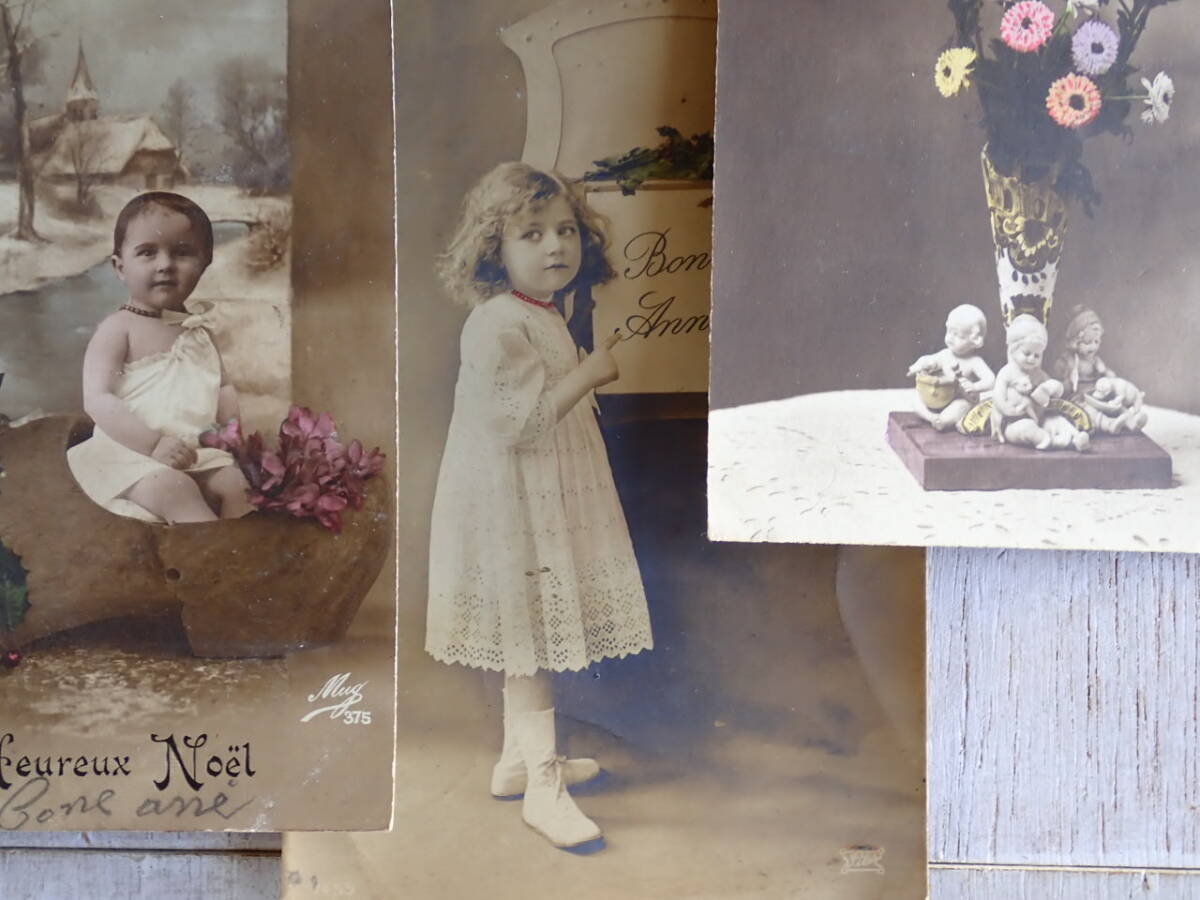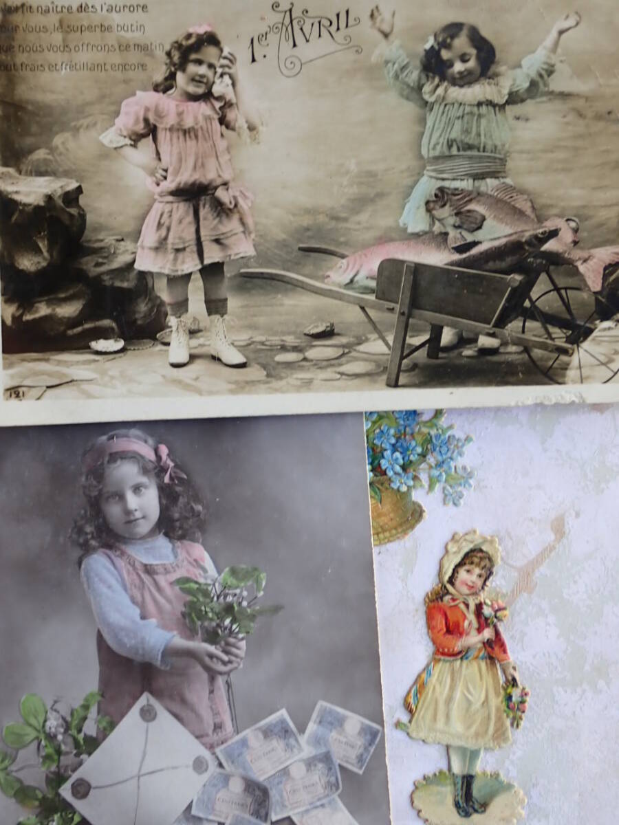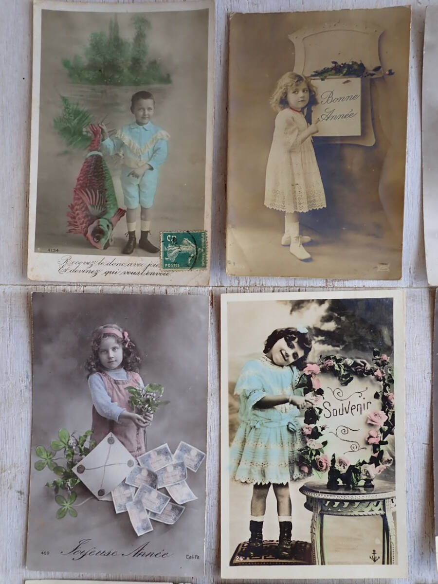 フランスアンティーク ポストカード 9枚 お祝い 花 紙もの ヴィンテージ フレンチ 素敵 古い 手書き ハガキ 葉書き paris 子供