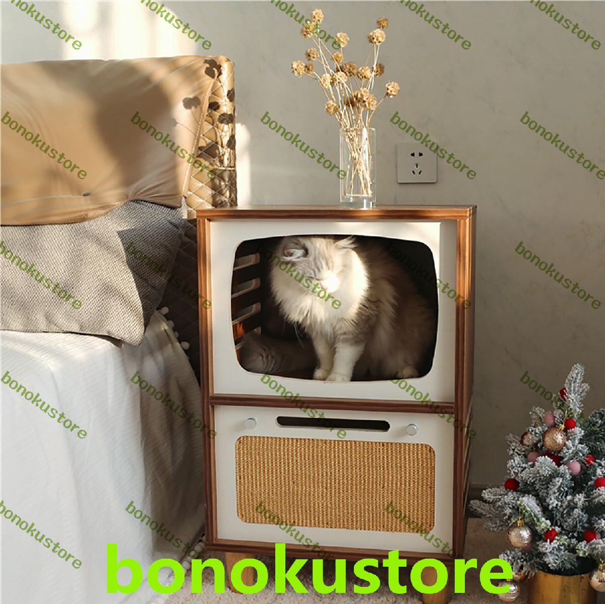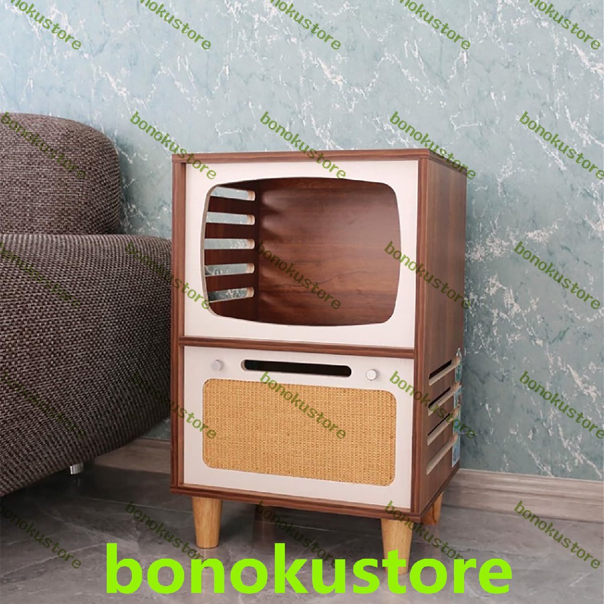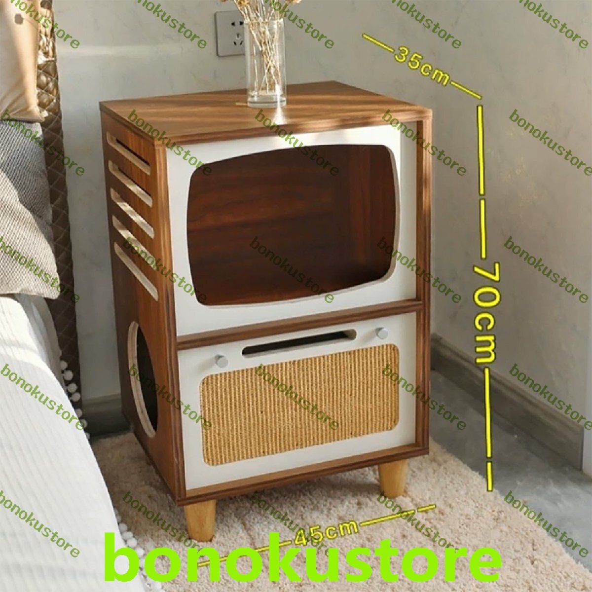 【無垢材】このベッドサイドテーブルは無垢材の多層板で作られており、頑丈で耐久性があります、テレビの形をしたシンプルでエレガントな木製キャットハウス家具は、キャットハウス、猫ベッド、コーヒーとして使用できます。日常のニーズを満たすテーブル/サイドテーブル、ベッドサイドテーブル、コーヒーテーブル、ランプテーブル、リビングルーム、ベッドルーム、応接室に最適です。