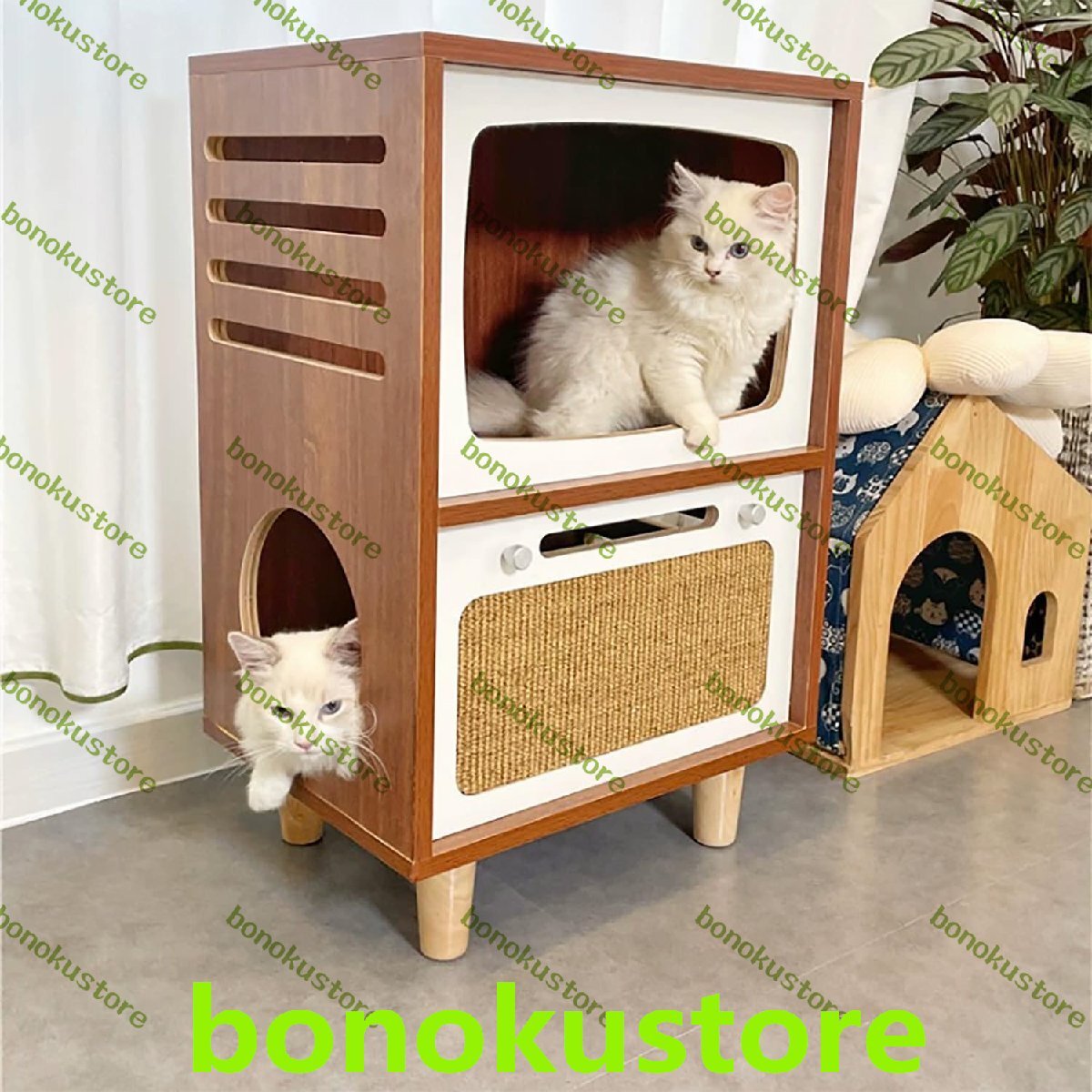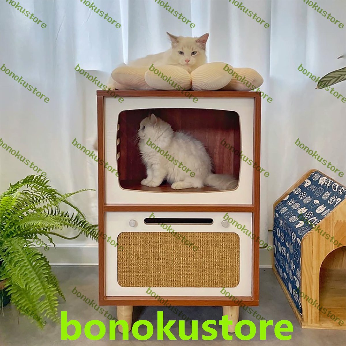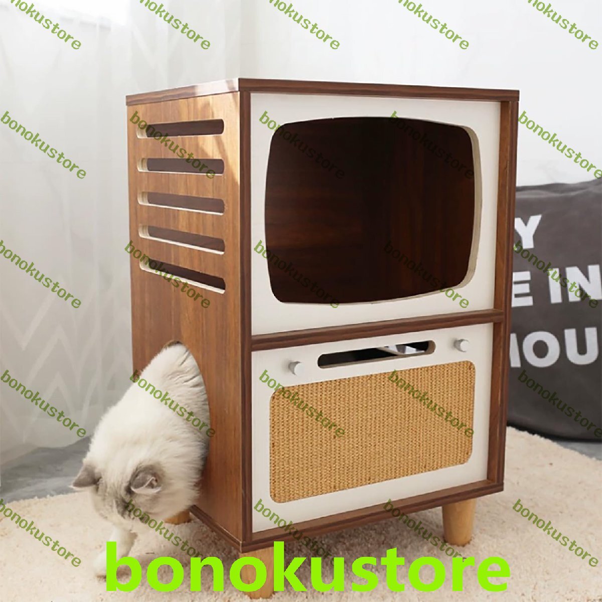 製品説明: ボード素材: 無垢材多層ボード、天然サイザル麻マット サイズ:45*35*70(cm) 板厚:1.6cm キャビネット重量: 13.5Kg この多機能猫キャビネットはレトロなテレビの形をしており、ベッドサイドテーブルとしても使用できます。二層の猫の巣のデザインがあり、猫に休息と遊びのスペースを与えます。猫の爪とぎ用のサイザル麻パッドも付いています。彼らの爪。 厚みのある無垢材の板なので、節がぐらつかず、安定性が非常に優れています。 この製品には取り付けが必要です(取り付けプロセス中にご質問がある場合は、お問い合わせください)