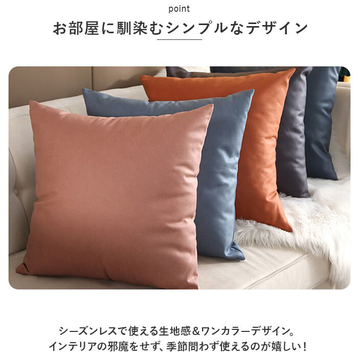 商品説明 | ・・お部屋を彩る♪カラフルなクッションカバーが登場。 ・【お部屋に馴染むシンプルなデザイン】 ・シーズンレスで使える生地感&ワンカラーデザイン。インテリアの邪魔をせず、季節問わず使えるのが嬉しい! ・【使い勝手ばっちり】 ・大きさは一般的なクッションサイズの約45cm×約45cmサイズ。 ・【ファスナー開口】 ・開口部は着脱がしやすいファスナー式。カバーの交換もラクラク! ・【お手入れカンタン】 ・汚れが気になったら自宅で洗濯できるから、いつも清潔。 ・【気軽に模様替え】 ・複数色揃えて、気分や季節によってカラーを替えてもOK! |