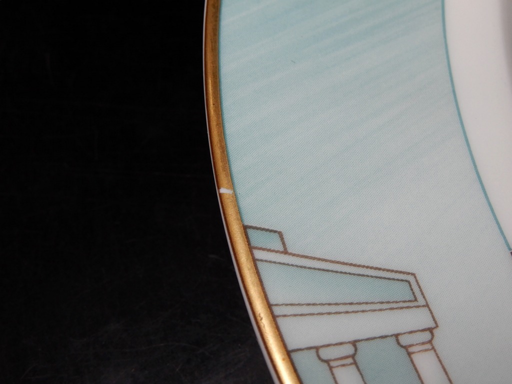 中古品の為、多少の薄汚れ、擦れ、1カ所だけ金彩剥げありますがそれ以外は美品で良品のうちだと思います。皿立ては付属しません。その他製造過程による物や見落とし等ある場合はご了承ください。神経質な方はご遠慮下さい。