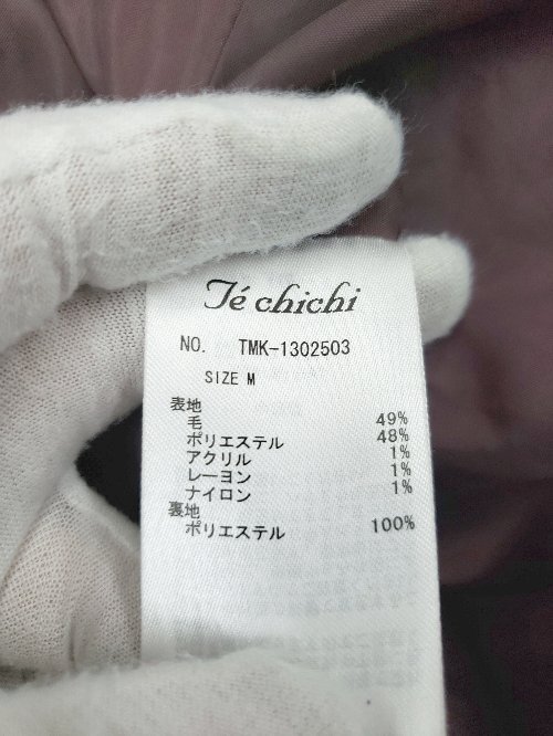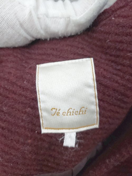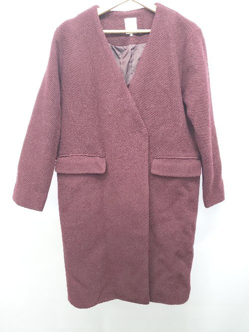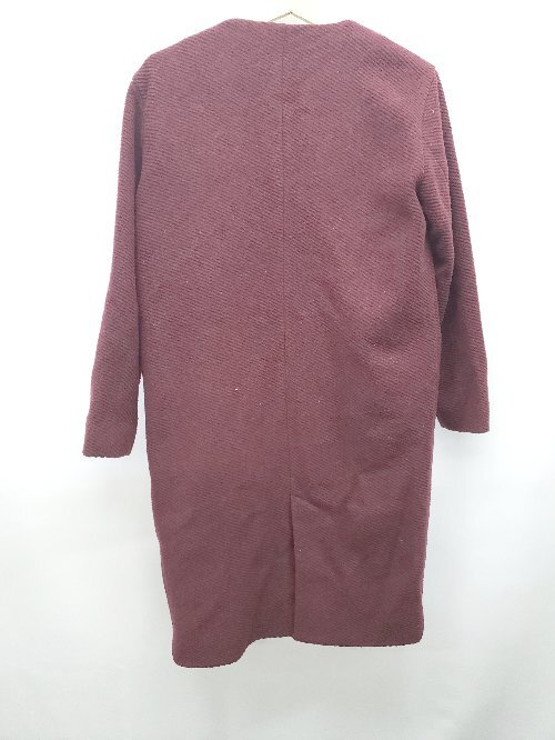 ■ Techichi テチチ ノーカラー ウール混 長袖 コート サイズM ボルドー レディース P