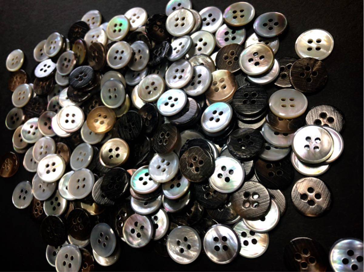 白蝶貝ボタンよりはキラキラしておりませんが、程よく落ち着いたシルバーカラーが魅力です。