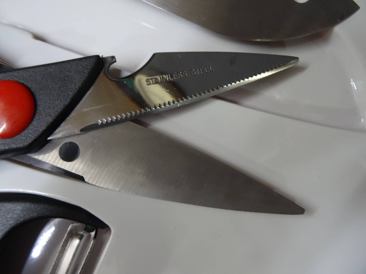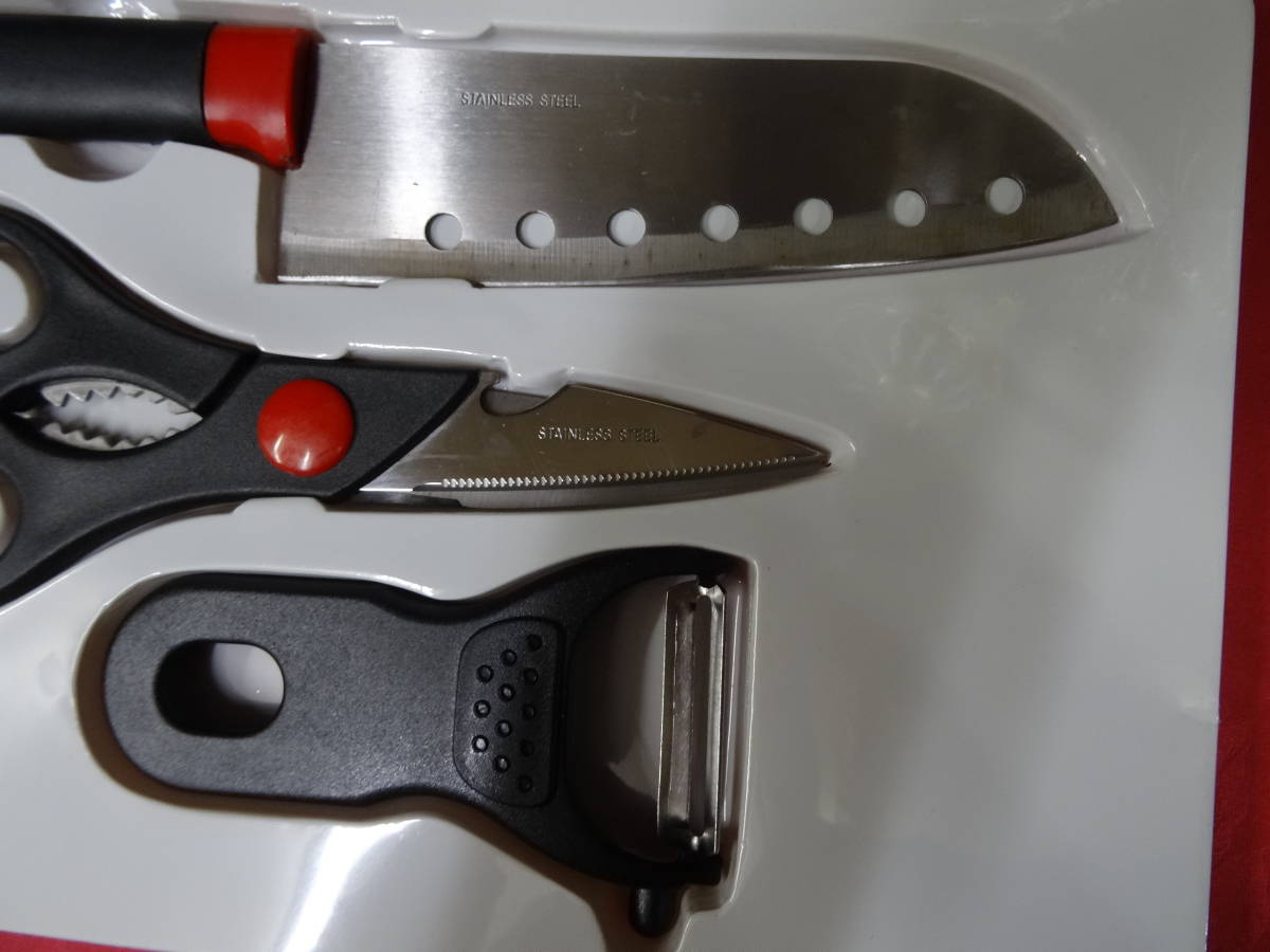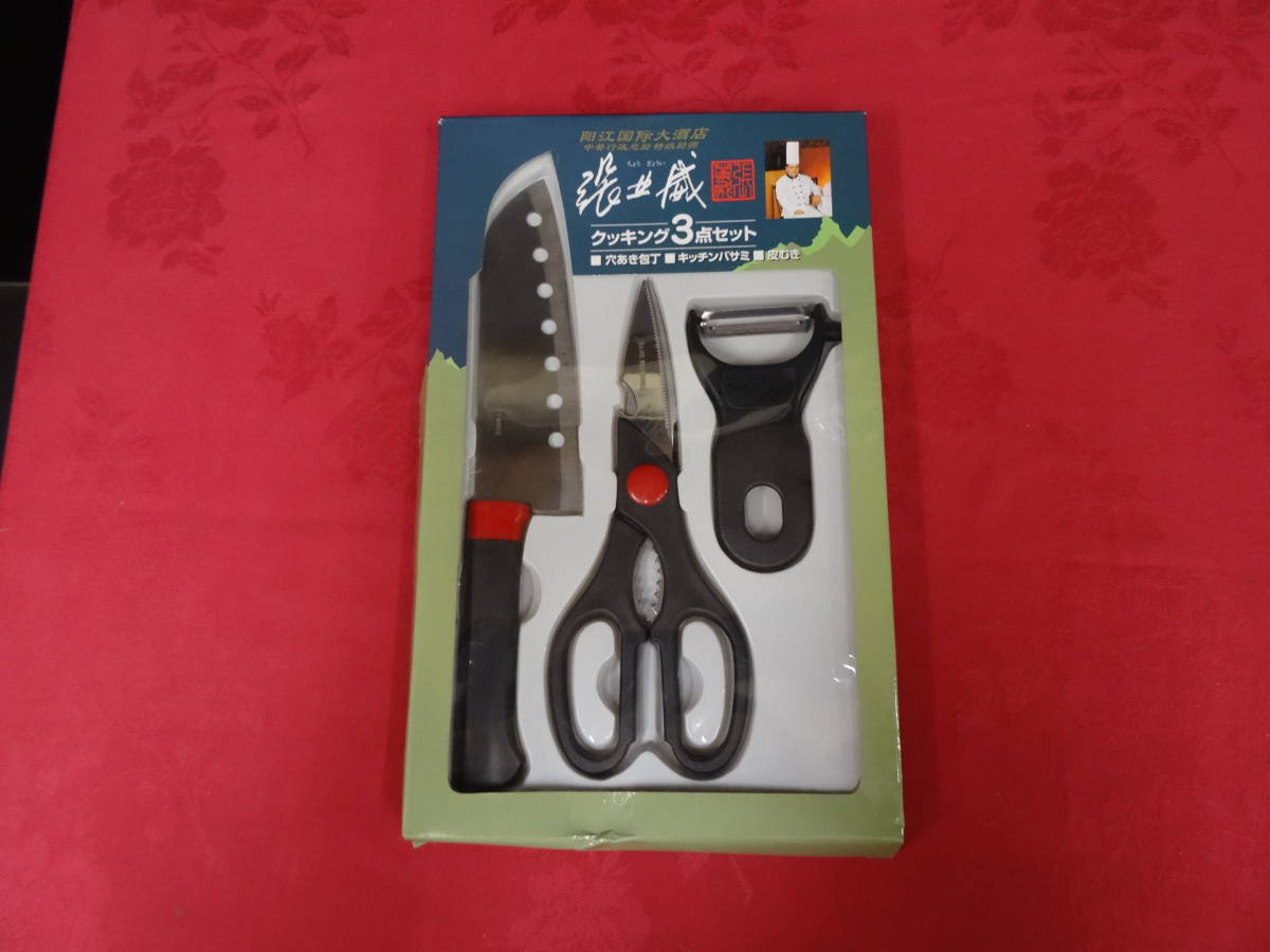 未使用 クッキング 3点 セット 穴あき包丁 キッチンバサミ 皮むき ちょう ぎょうい ekt1-94 | |||