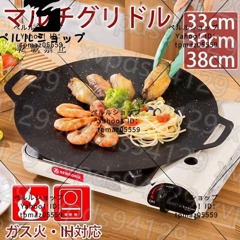 マルチグリドル パン 取っ手 33cm アウトドア鉄板 軽量深型 グリルパン ガスコンロ 直火 食洗機対応 キャンプ バーベキュー アウトドア