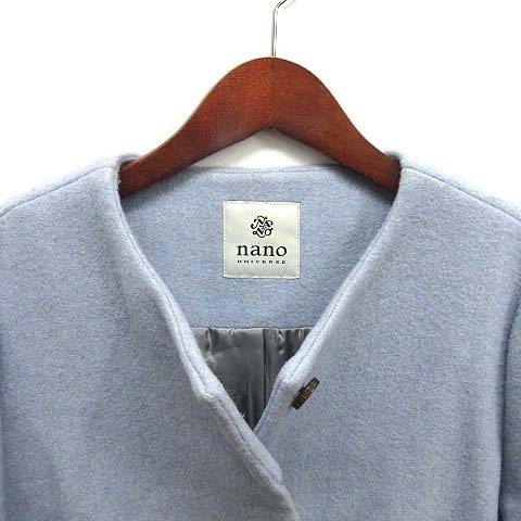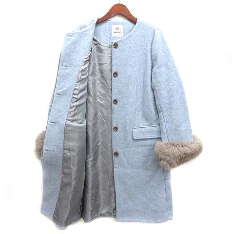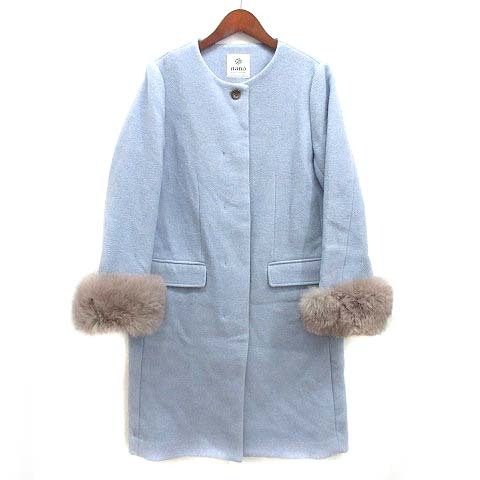 ナノユニバース nano universe フォックスファー 5way コート ノーカラー サックス ブルー 36 NL82COT012MY 美品 レディース