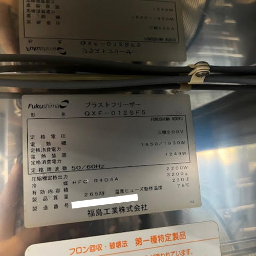 【業界最長1年保証】ブラストチラー フクシマガリレイ(福島工業) QXF-012SF5 業務用 中古/送料別途見積