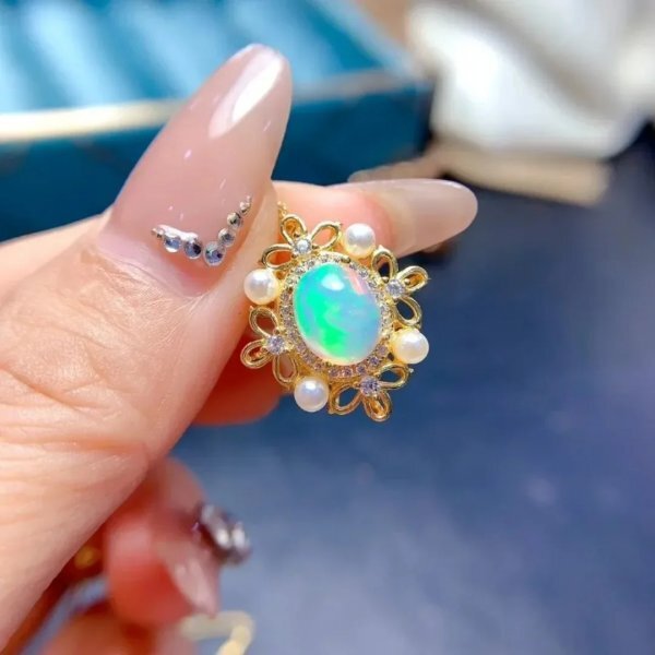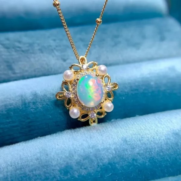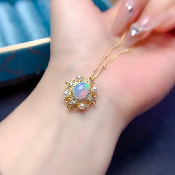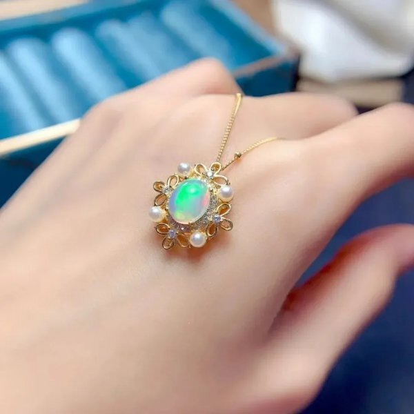 ナチュラルオパールペンダント付きネックレス、925シルバー、証明書