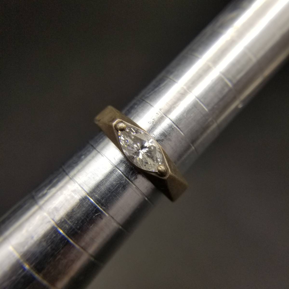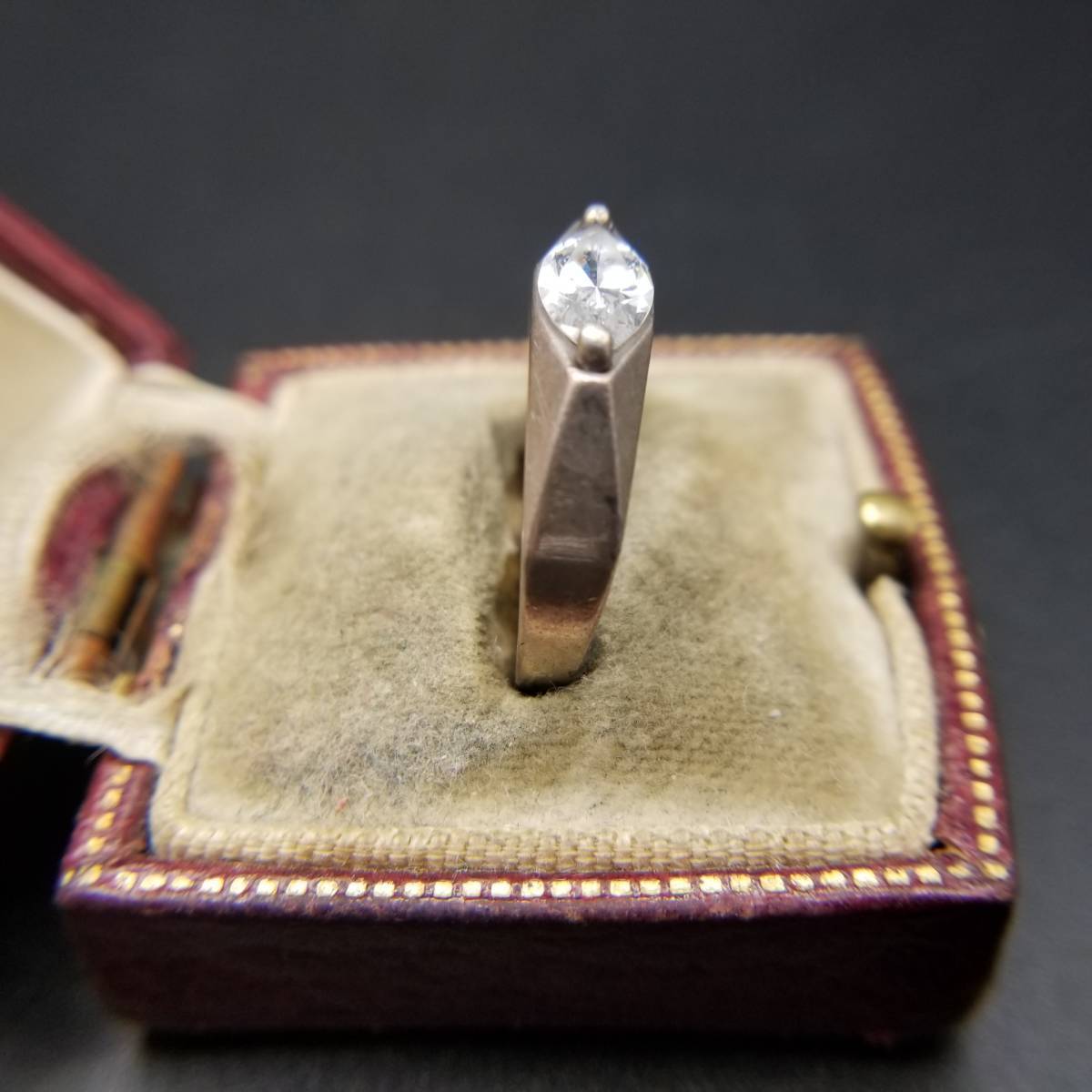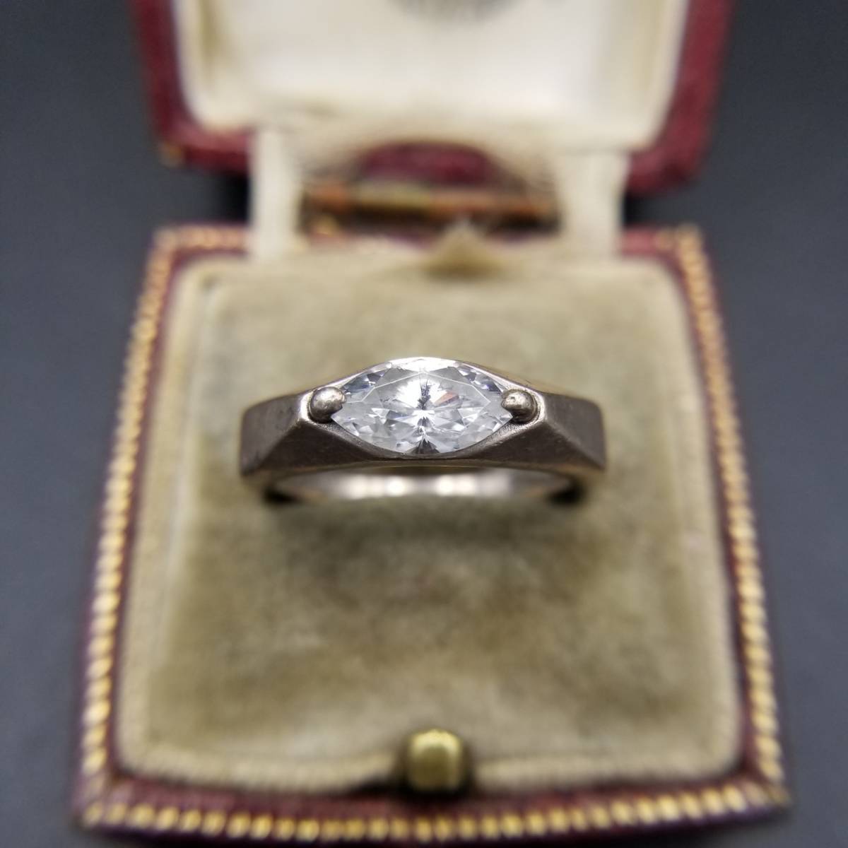 アールデコ キュービックジルコニア マーキスカット スターリングシルバー ヴィンテージ リング 3.1g 銀 指輪 ミニマル エレガント R12-US