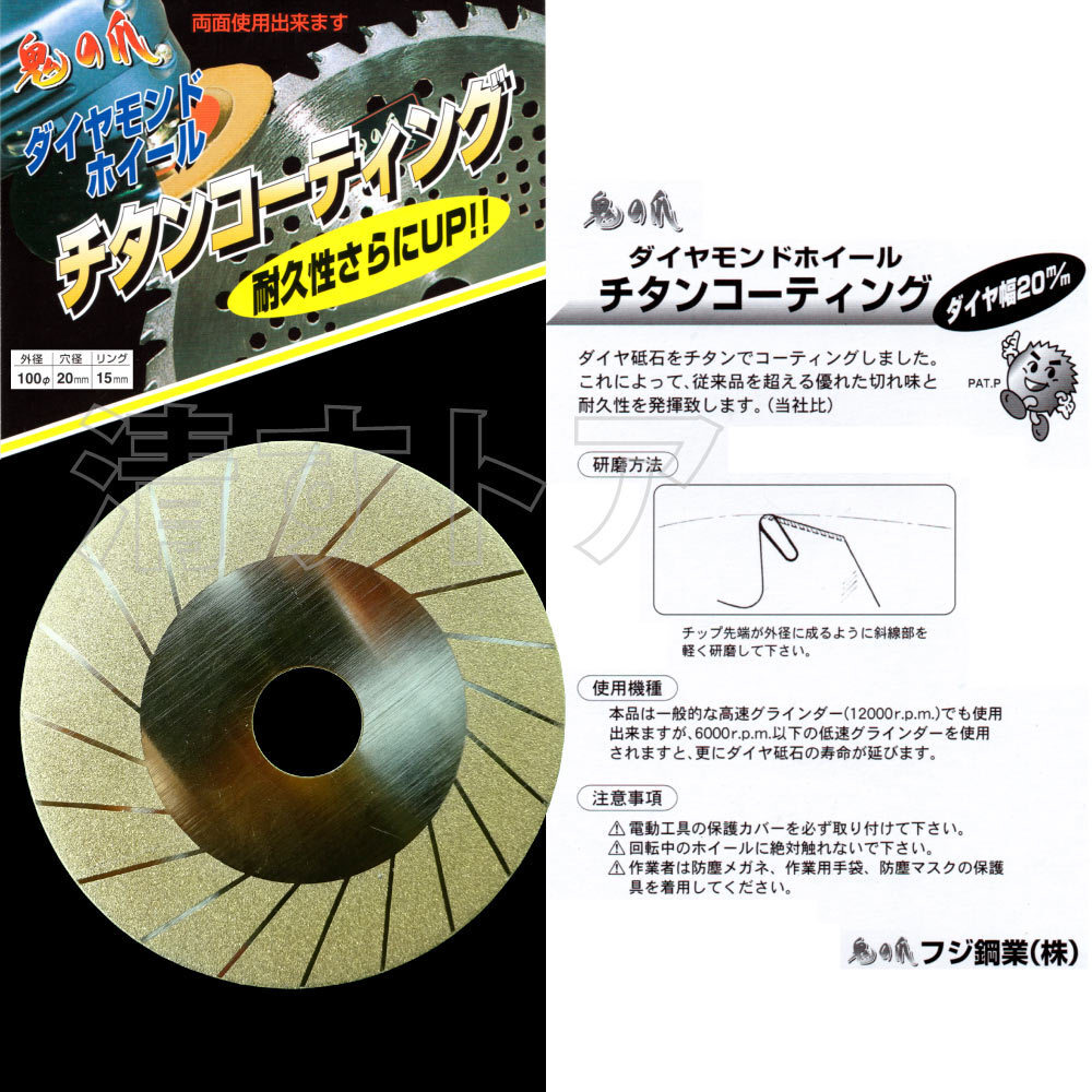 (メール便) 鬼の爪 チタンコーティングダイヤ砥石 100mm 1枚 ディスクグラインダー用 ダイヤモンドホイール フジ鋼業 FD-001