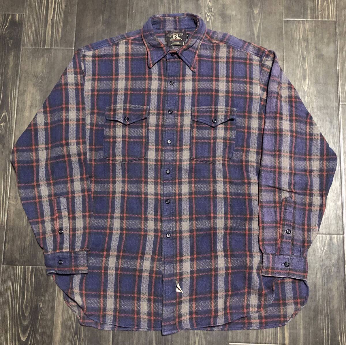 [USED] RRL CHECK NEL SHIRTS NAVY L
