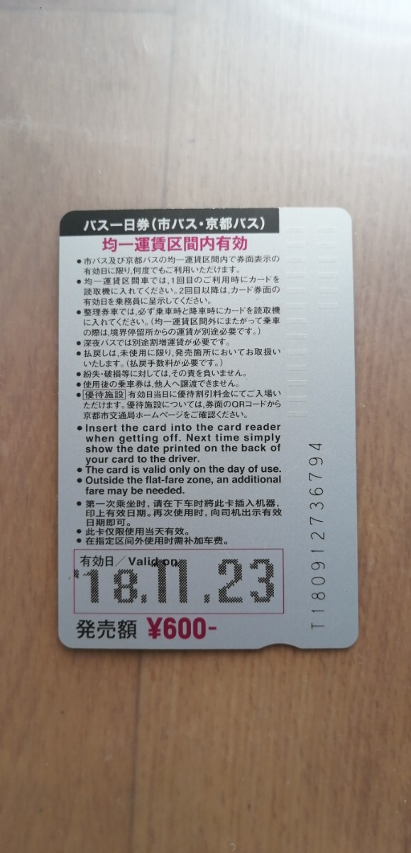 京都市バス一日乗車券 2018年 1円スタート