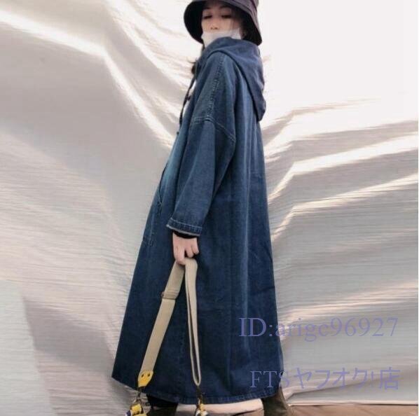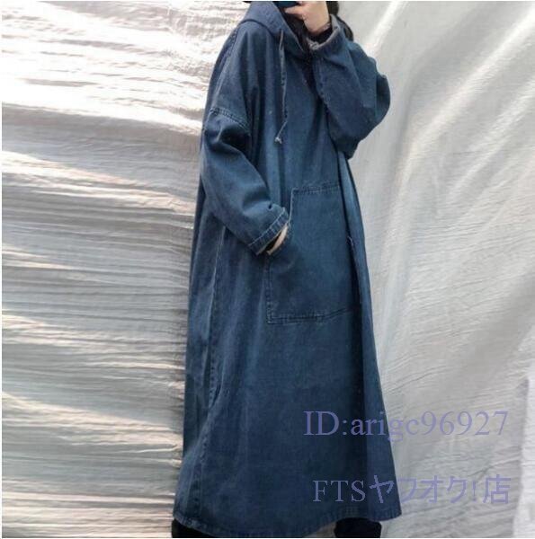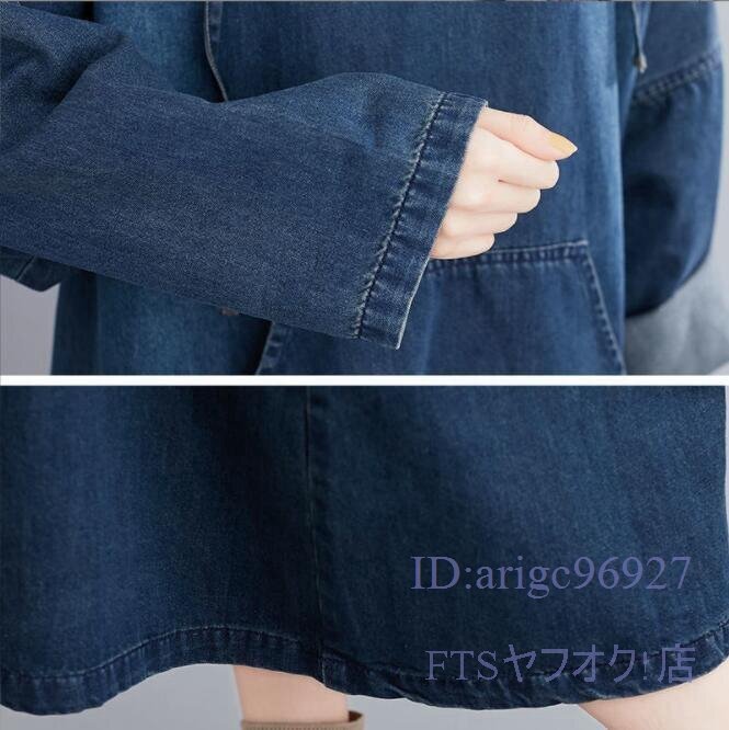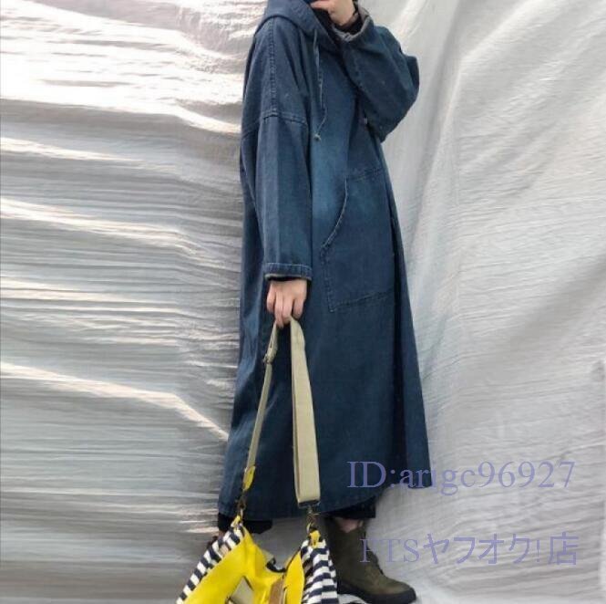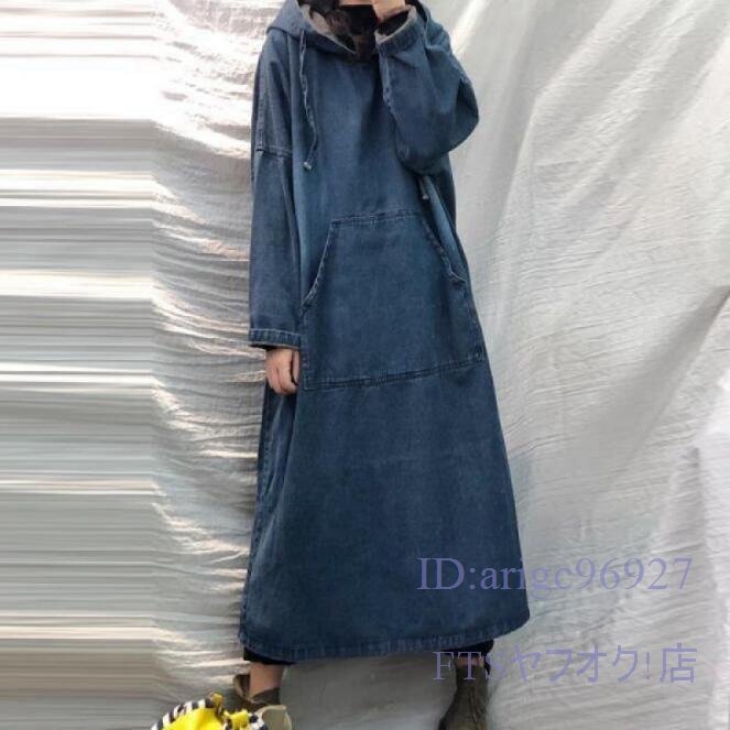 A0677☆新品M.L.XL.2XLサイズ ミセス フード付き デニム ワンピース ロング ゆったり ワンピース おしゃれ シンプル