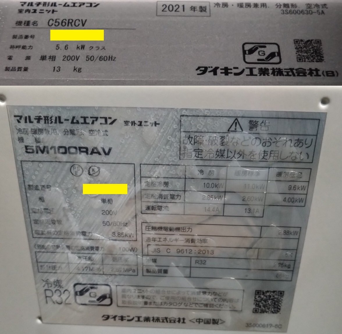 | ダイキン ハウジングエアコン マルチタイプ 室内機C56RCV×2台 室外機 5M100RAV×1 天井埋込カセット型 |