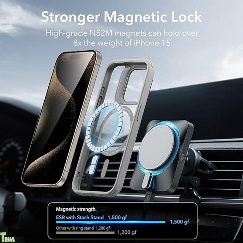 1,500 gの吸着力を持つ強力な内蔵磁石によりiPhone 15の8倍以上の重量を吸着可能です。