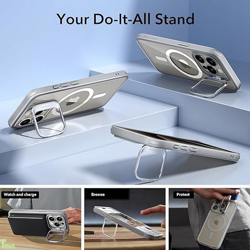 クリア グレー 高透明 調整可能 隠しスタンド Magsafe対応 米軍MIL規格 シェル iPhone 15 Pro ワイヤレス充電 保護 バンパー ケース カバー
