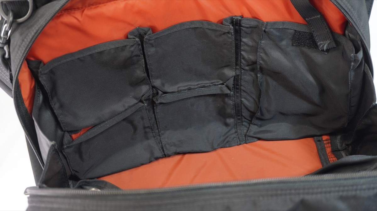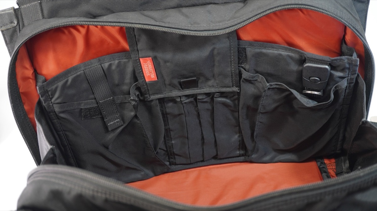 様々な種類のポケットが充実、斜めがけ可能、500mlペットボトルを立てて収納可能